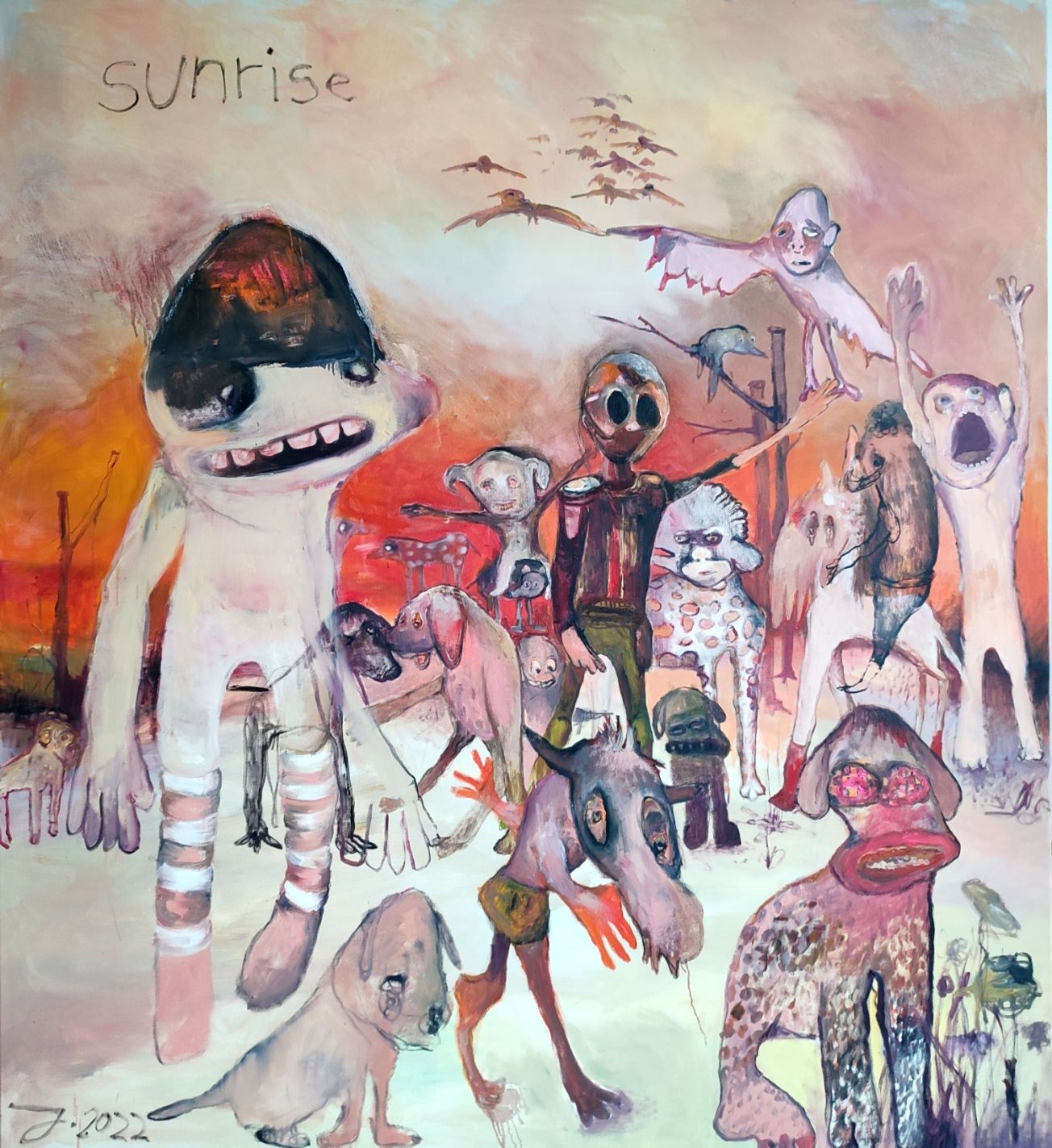 Every painting deals with several of the themes I process throughout my work. There is the anthropomorphism of in my work, but also thoughts, feelings and ideas from outside the world.