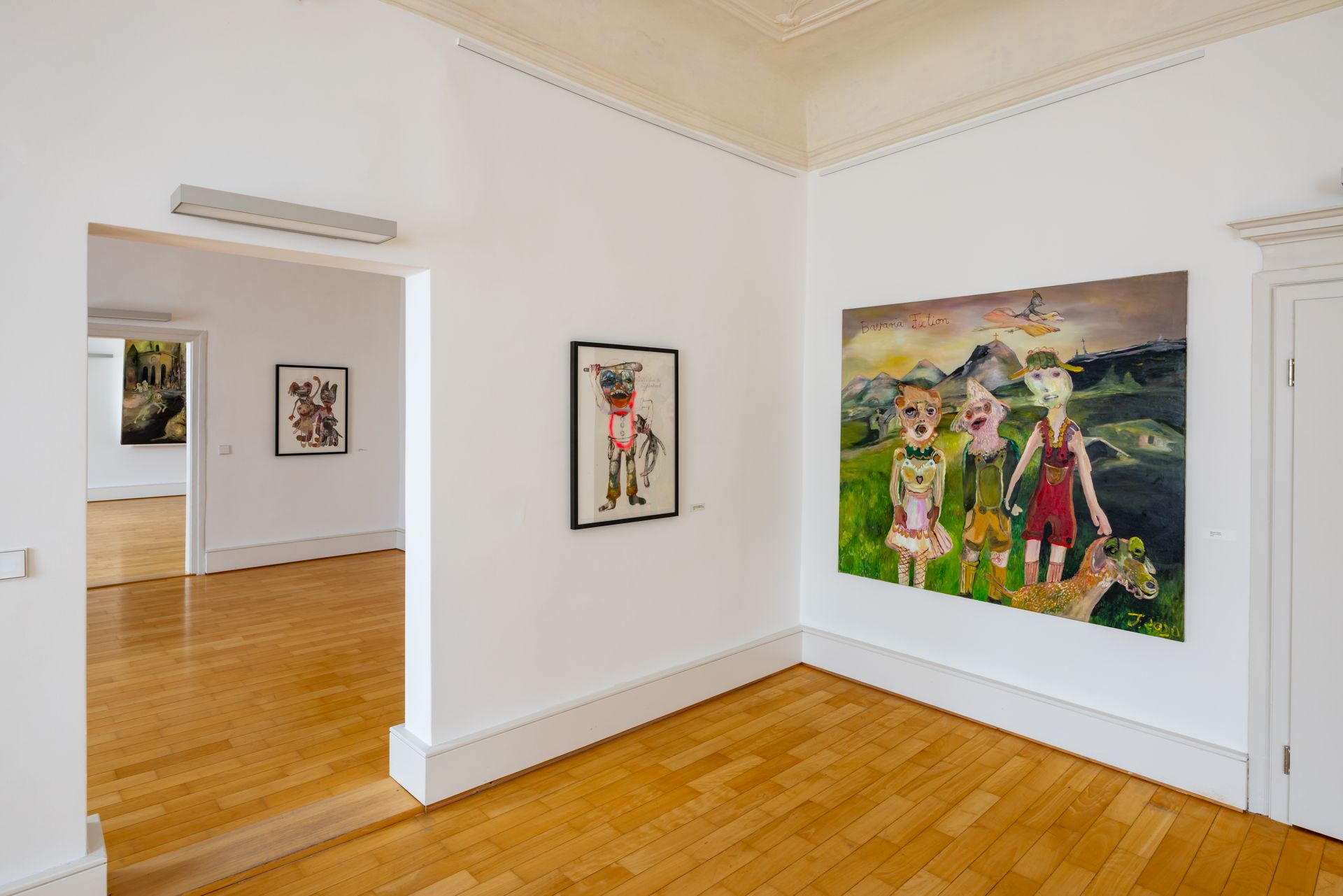 Hundertmark`s visual language resists easy categorization. Her paintings unfold as chaotic tableaux that combine traditional oil techniques with whimsical elements reminiscent of comics and expressionism. By weaving in surreal fragments and collage pieces from old cooking, animal, and nature books, she anchors her fantastical figures in recognizably domestic textures. This deliberate juxtaposition creates a dissonance that both unsettles and invites interpretation.