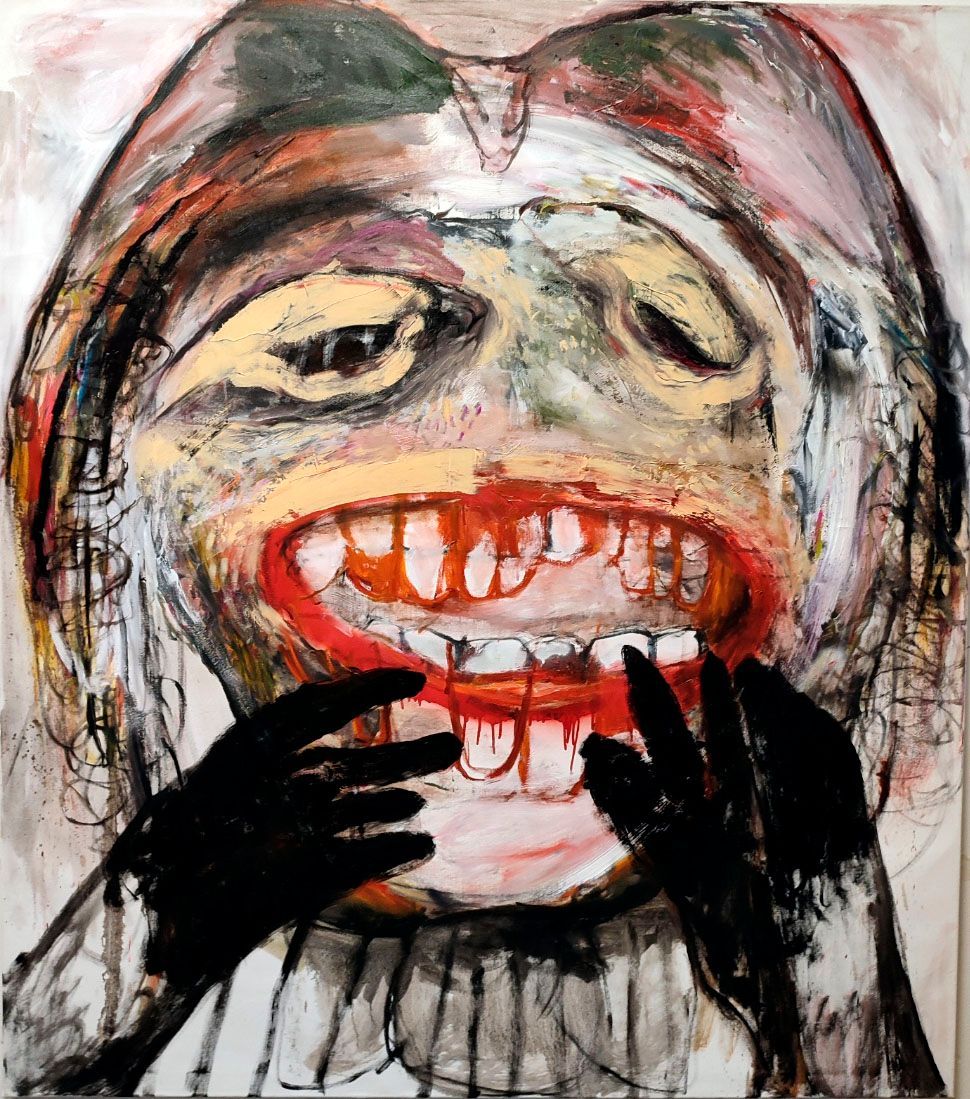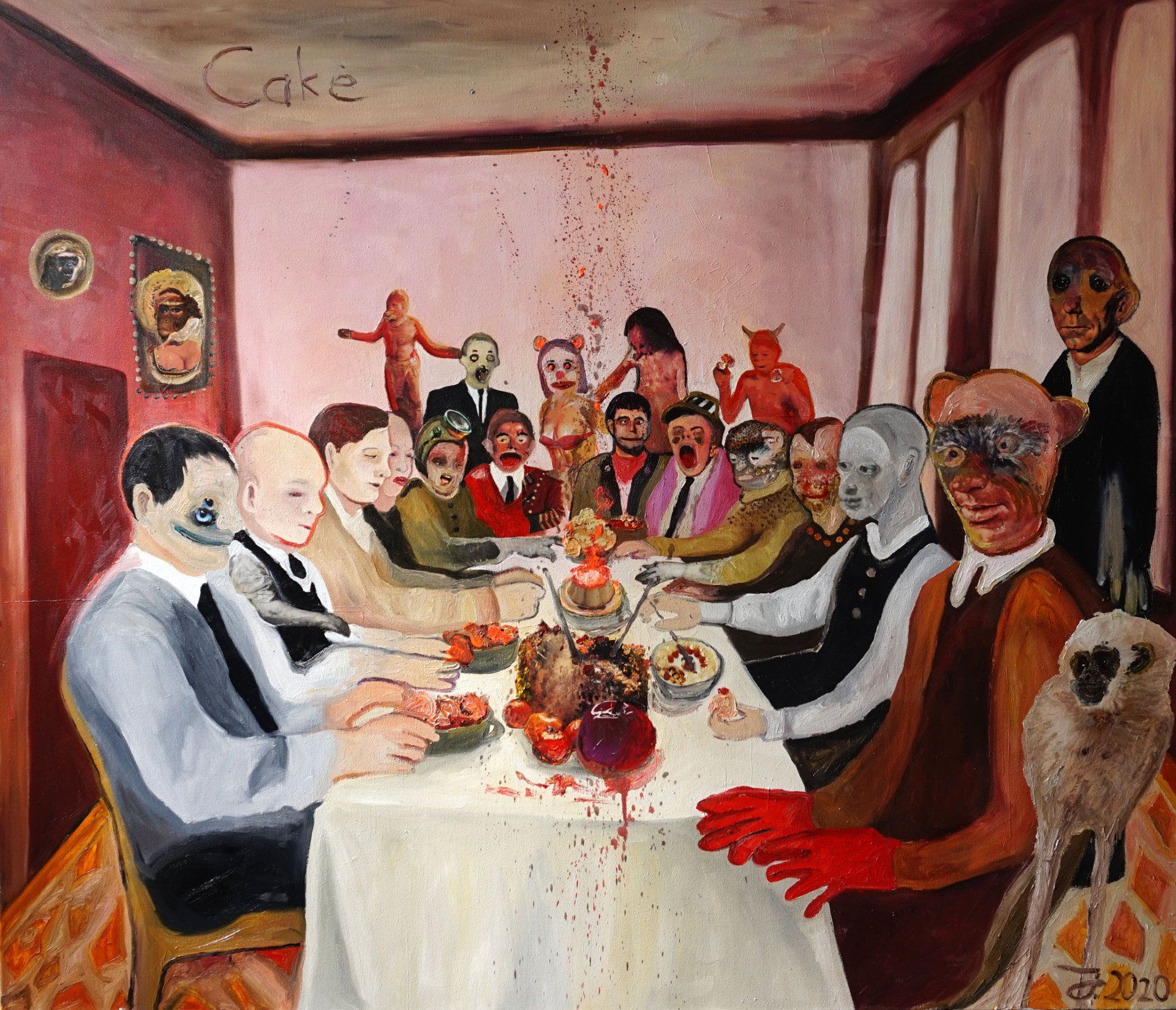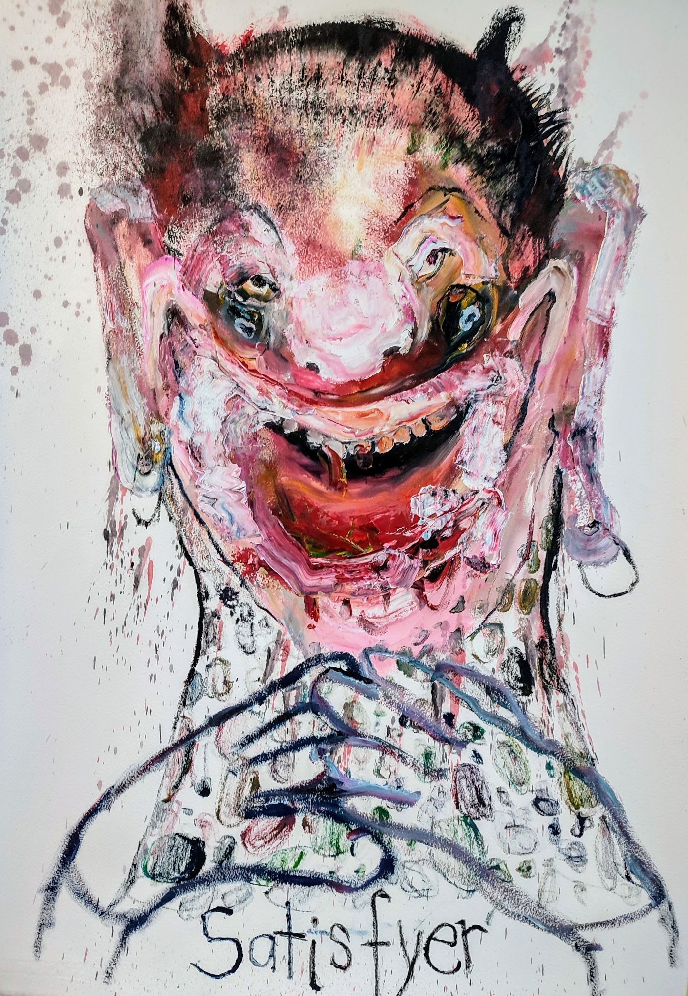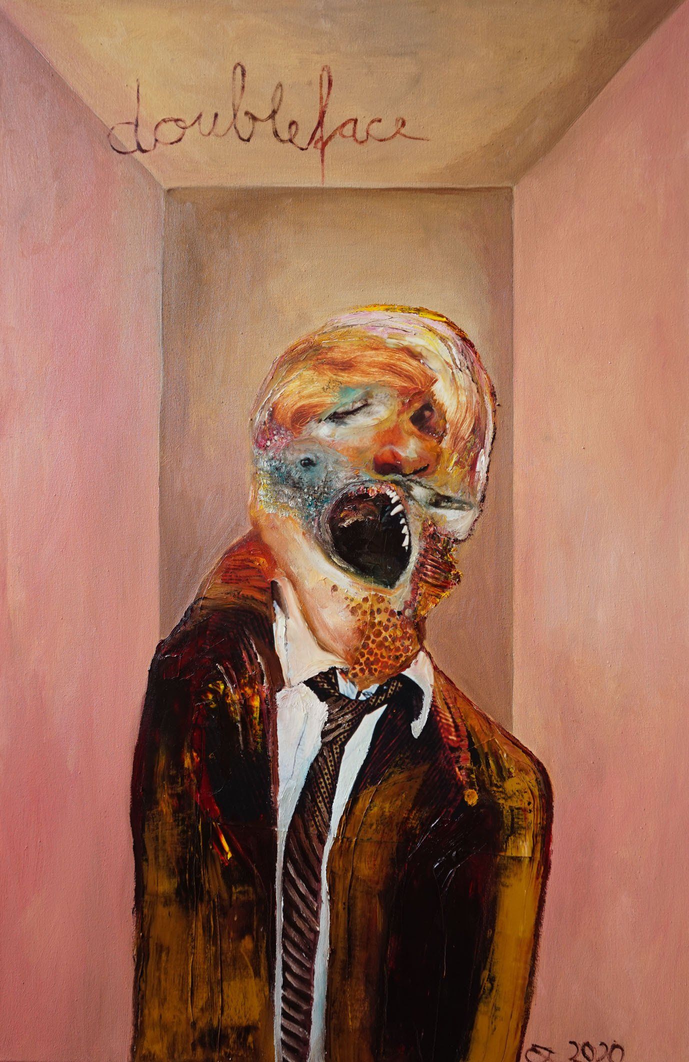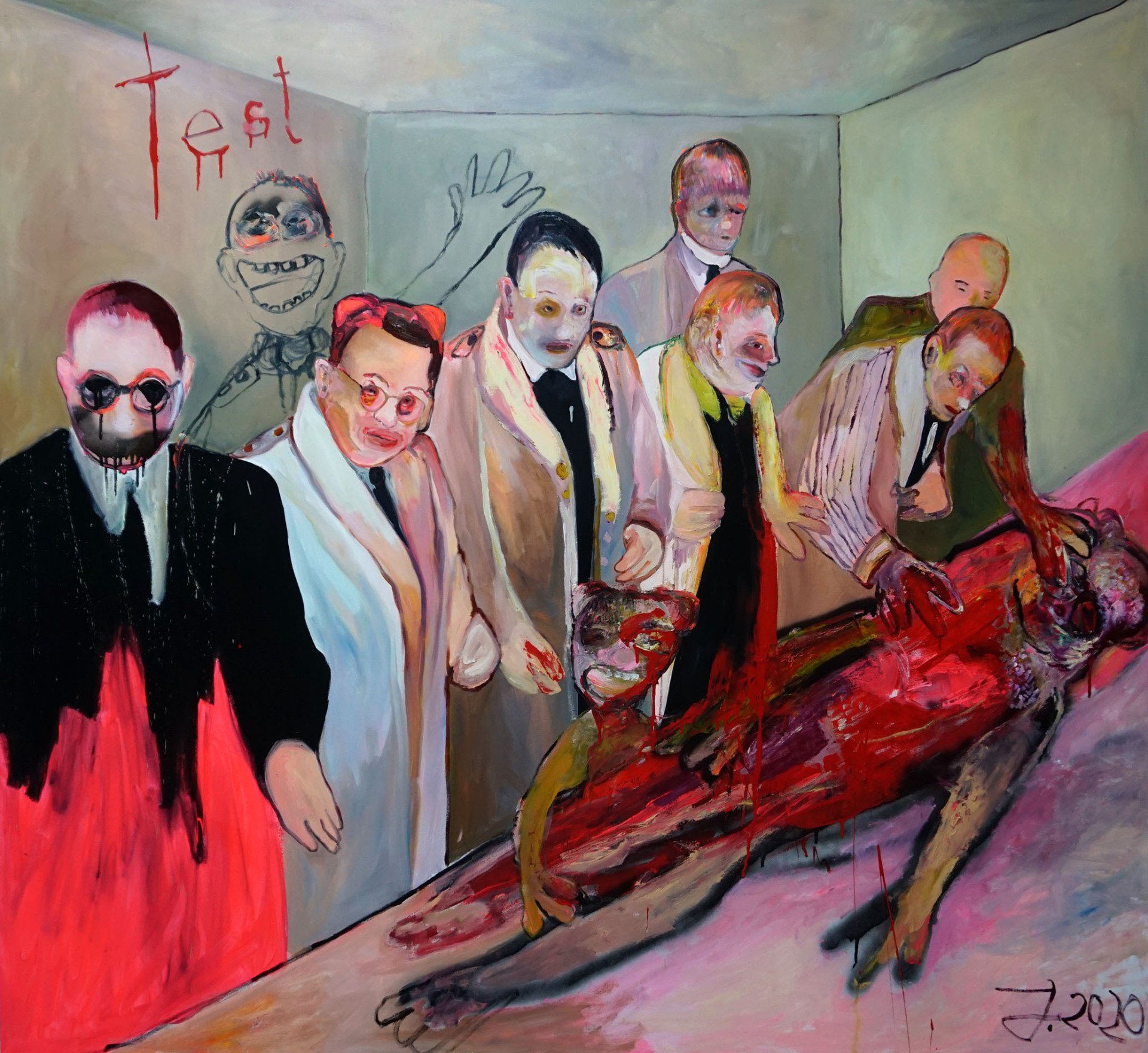 I´m inspired by the following artists. Francis Bacon, Paul Mc Carthy, Georg Grosz, Cindy Sherman but I`m not very ambitious in art history, so I often work very free without having some imaginations from other artists in my mind. I think that is the reason of the independence of my paintings. In my education, during my studies I learned a lot about Georg Grosz. I try to make satire paintings for the present time, we live in today.