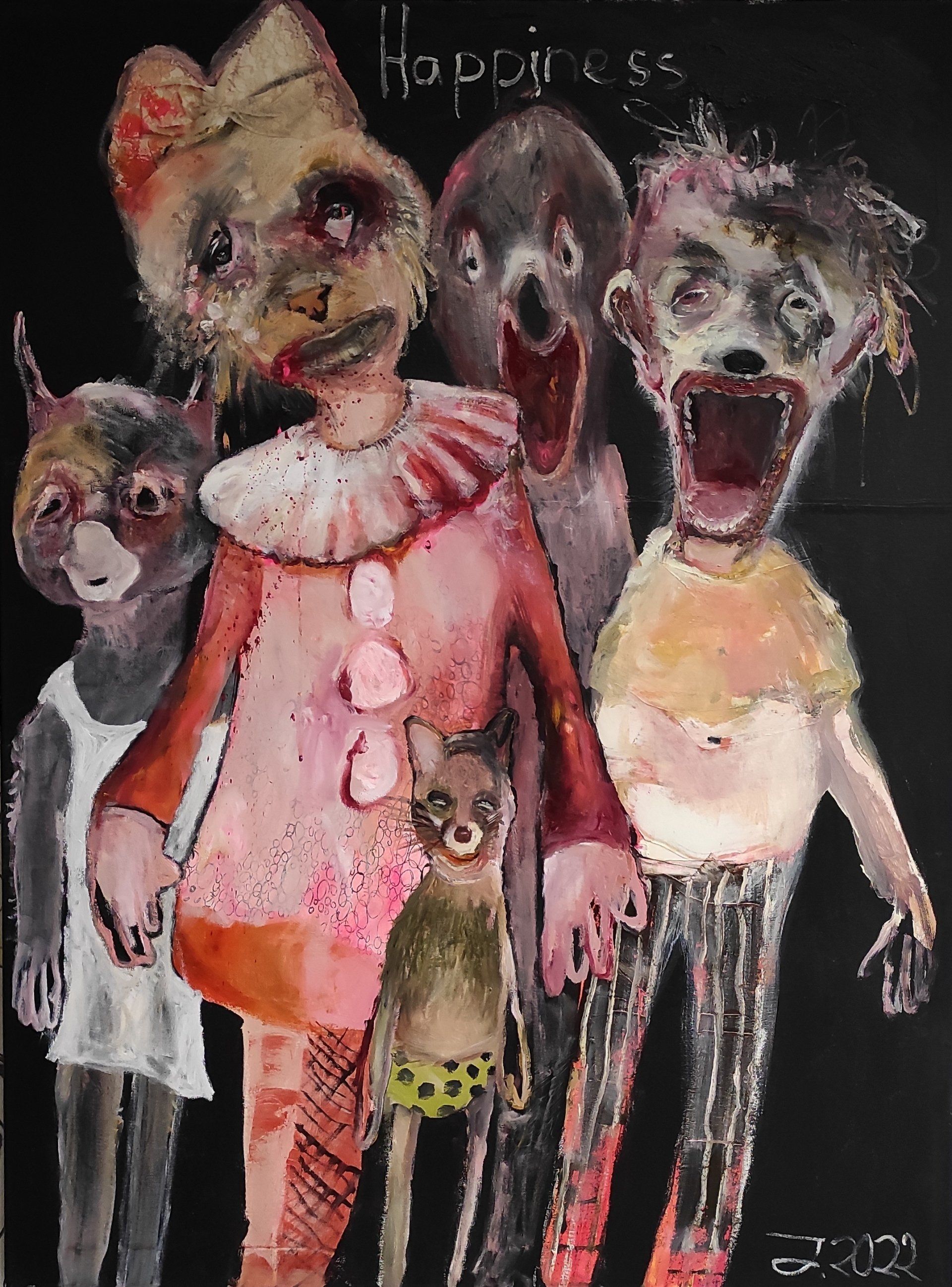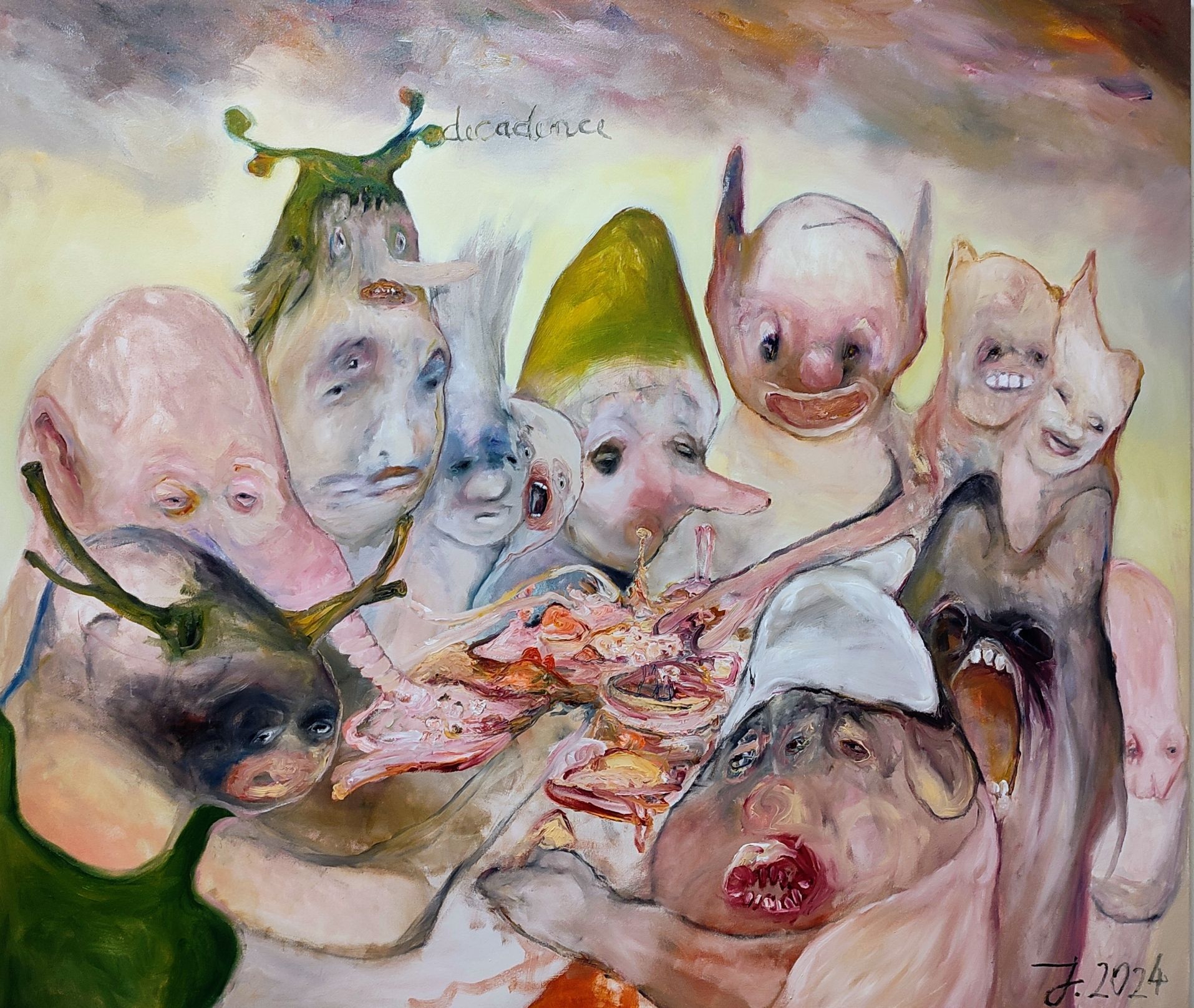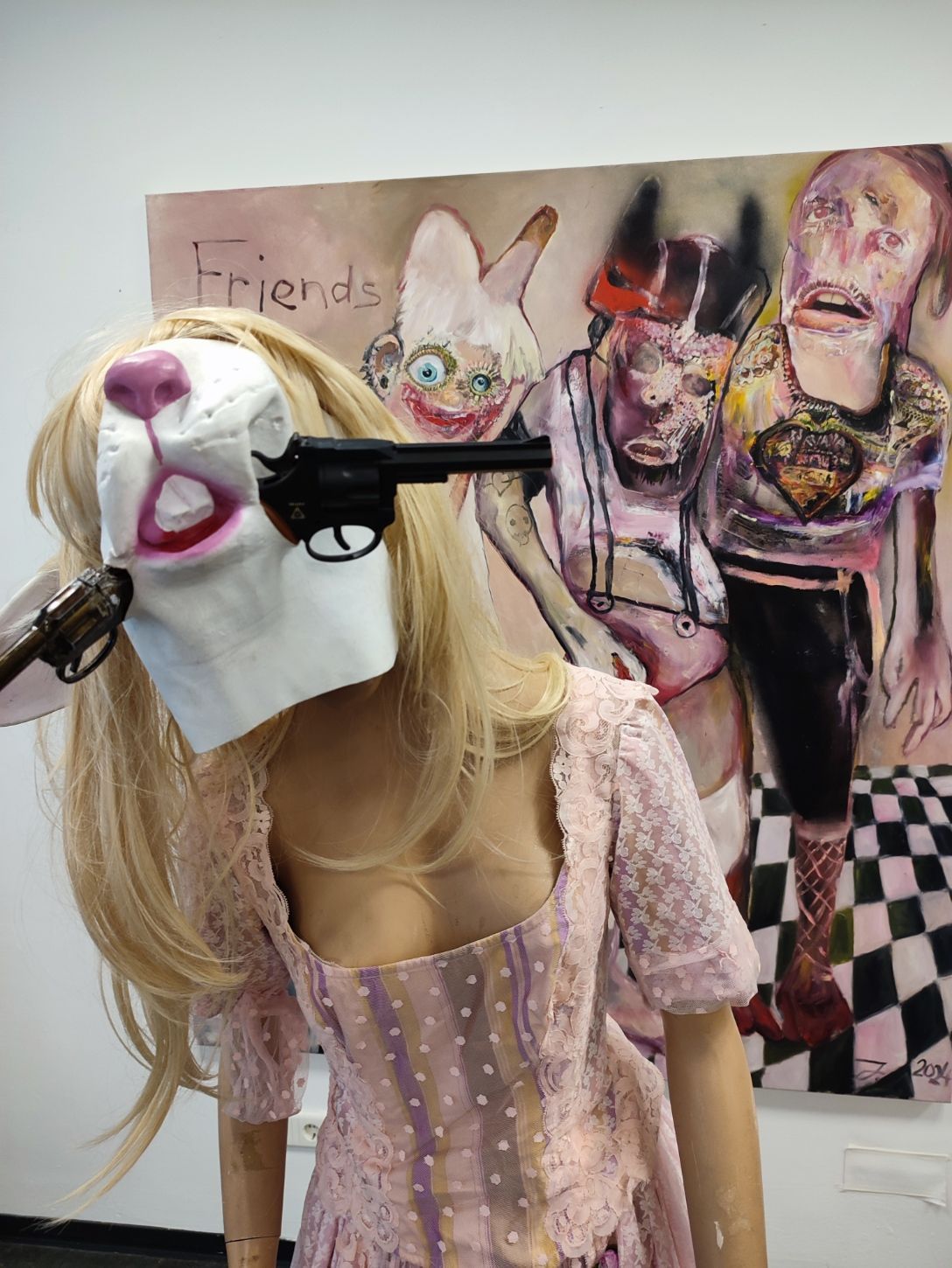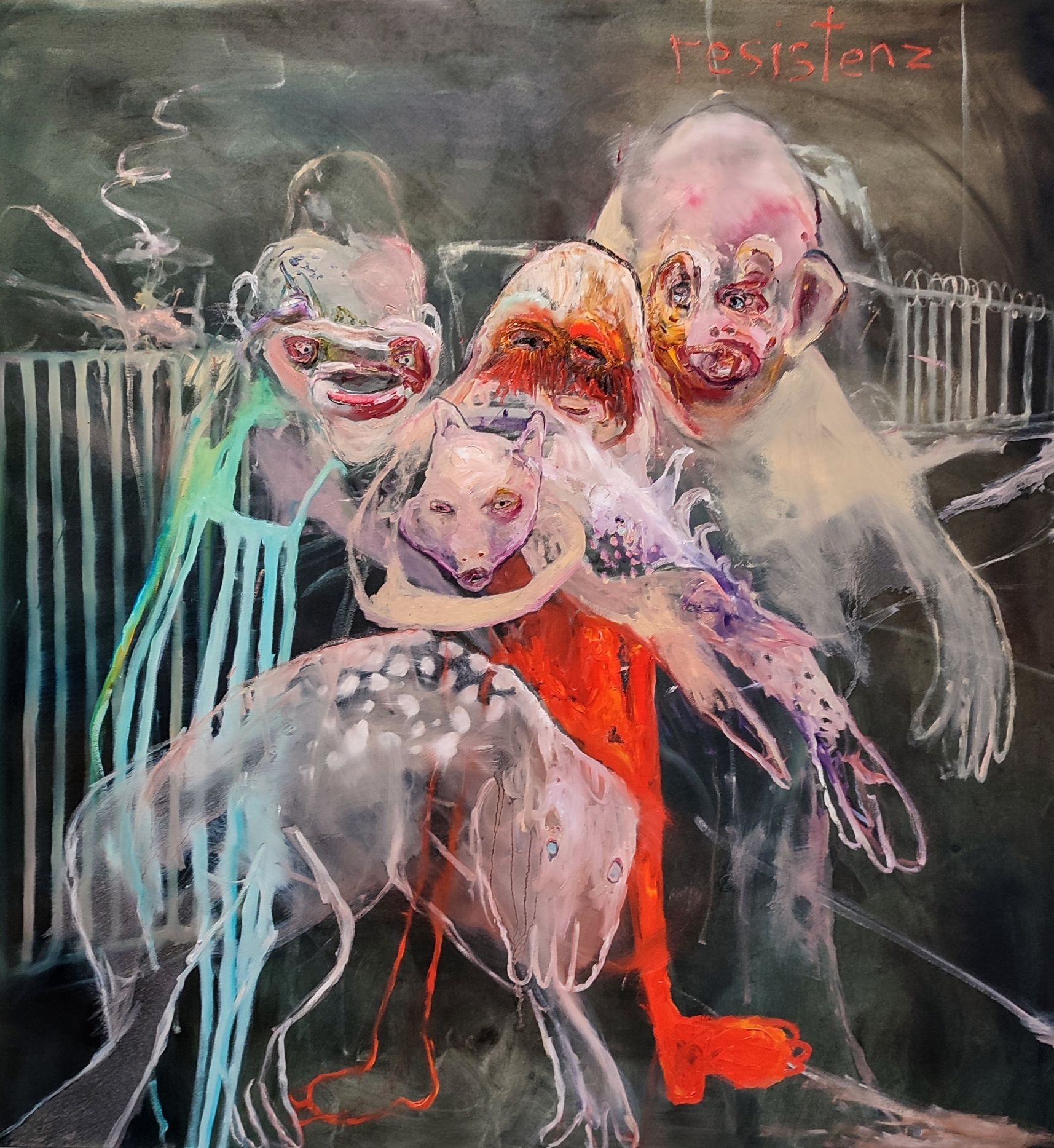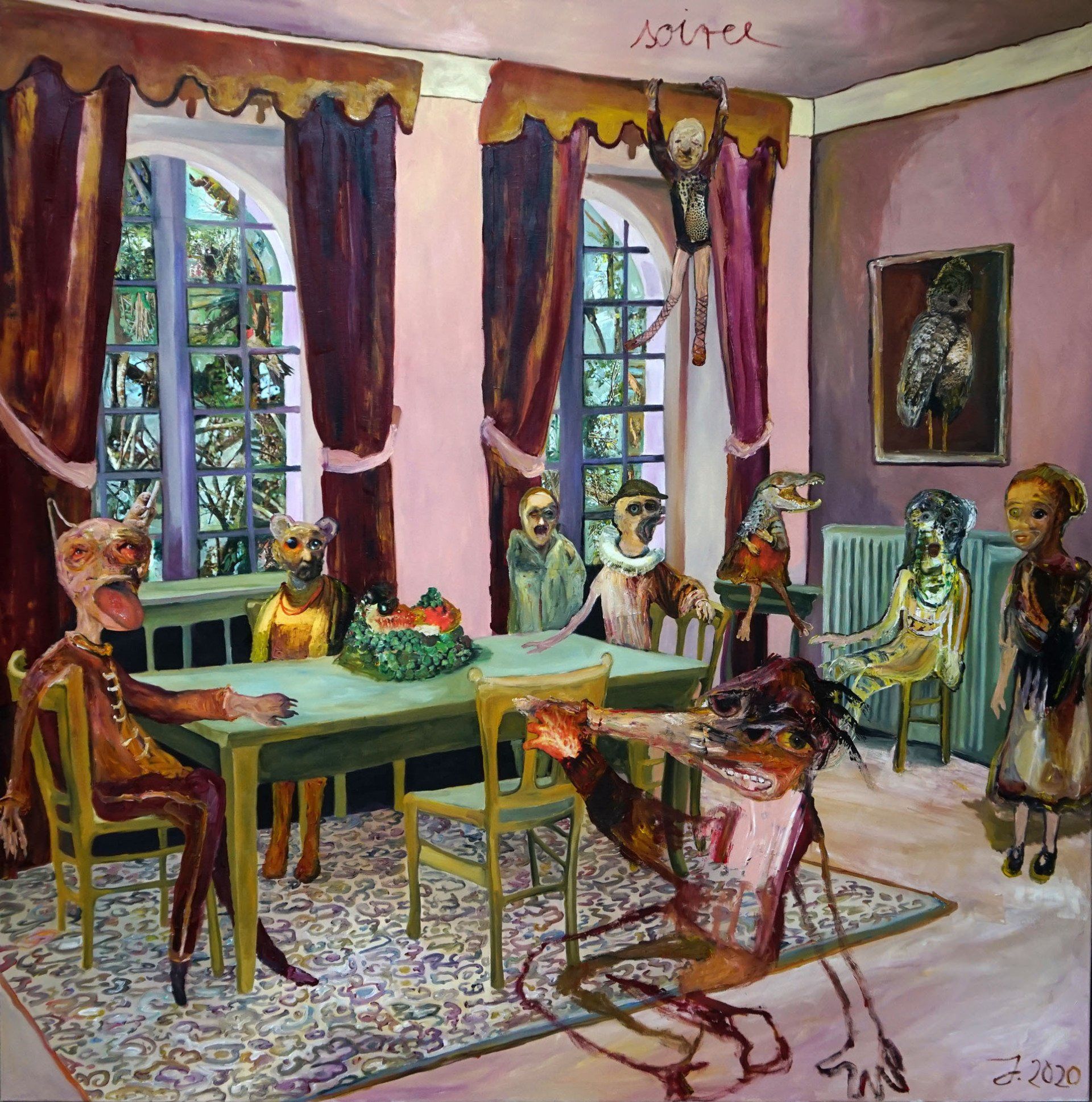 I´m inspired by the following artists. Francis Bacon, Paul Mc Carthy, Georg Grosz, Cindy Sherman but I`m not very ambitious in art history, so I often work very free without having some imaginations from other artists in my mind. I think that is the reason of the independence of my paintings. In my education, during my studies I learned a lot about Georg Grosz. I try to make satire paintings for the present time, we live in today.