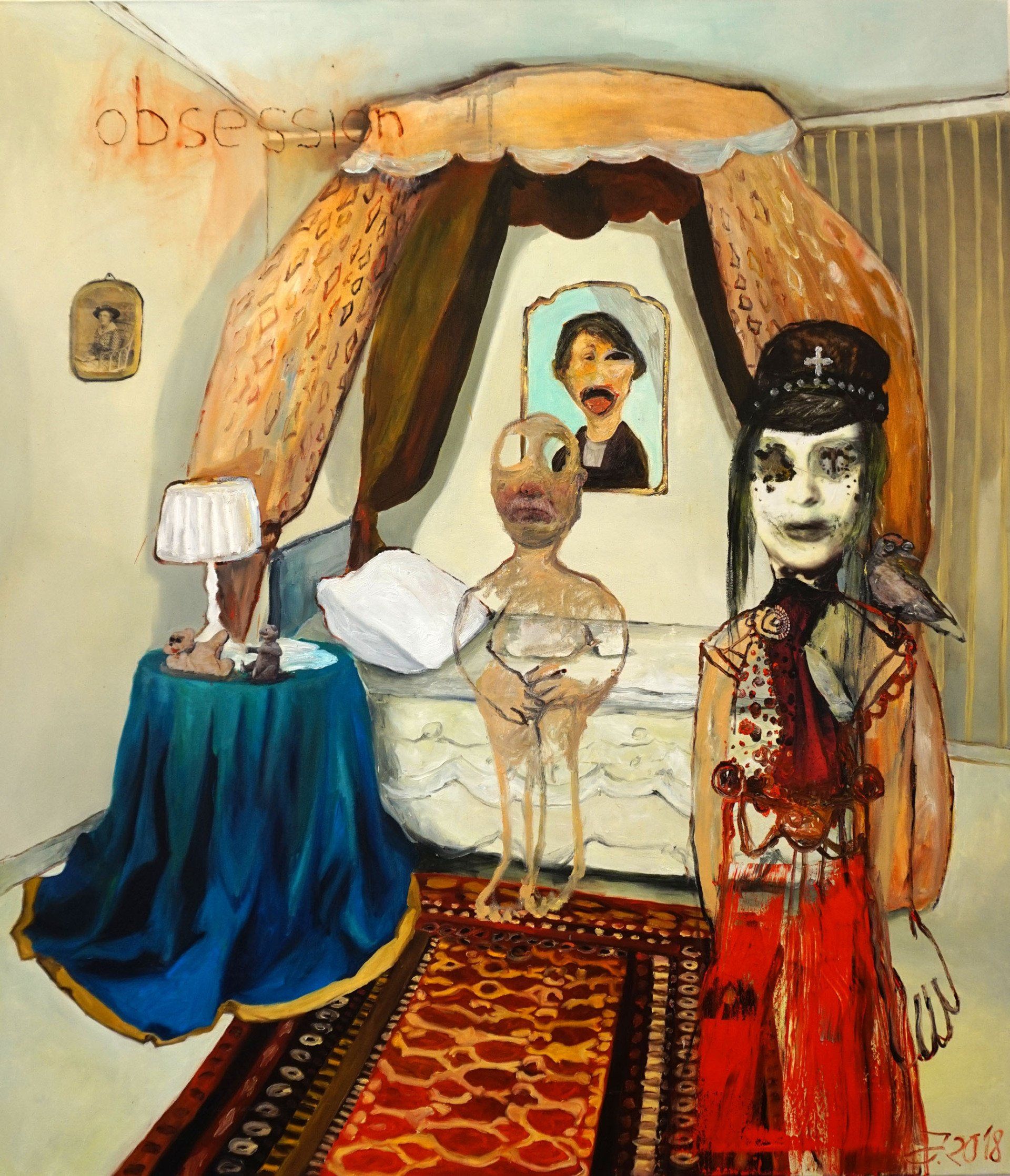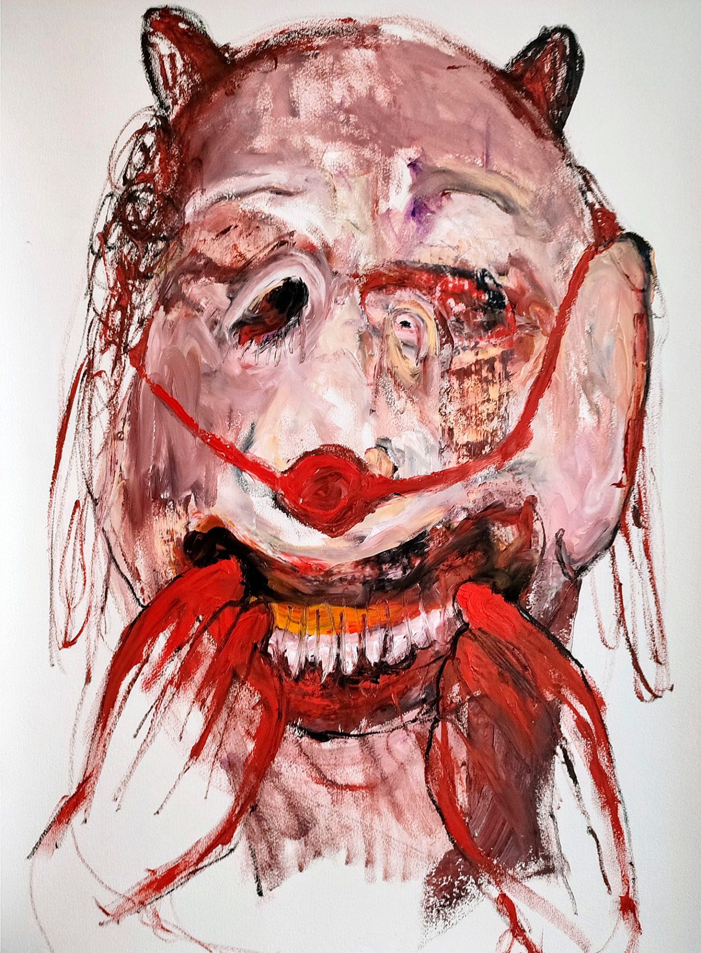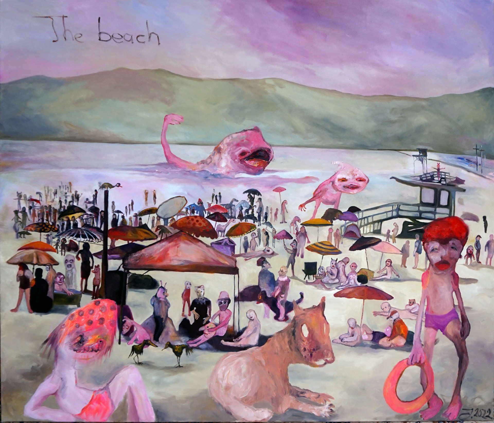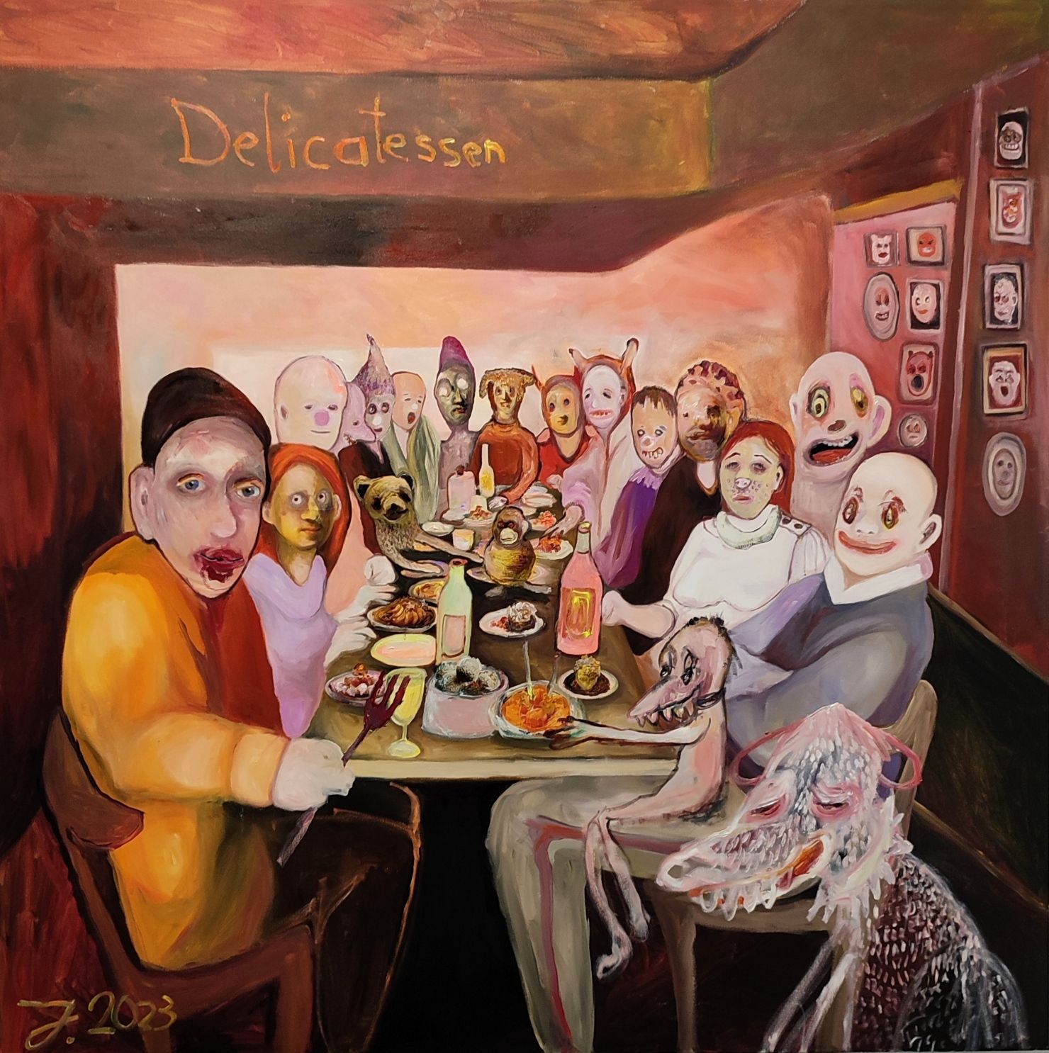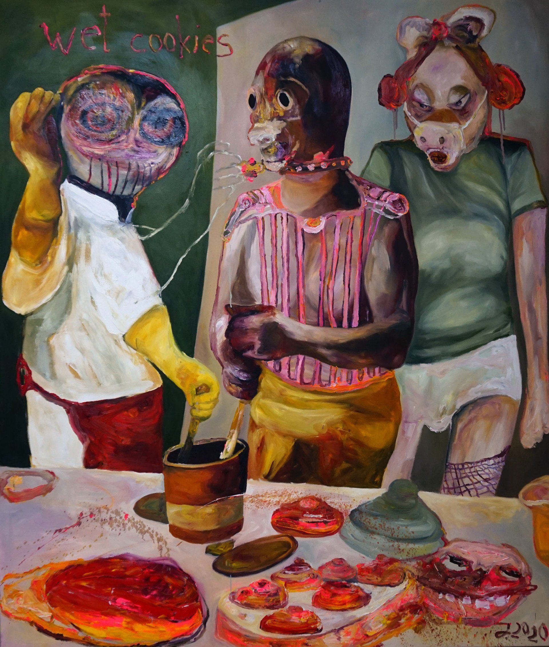 I´m inspired by the following artists. Francis Bacon, Paul Mc Carthy, Georg Grosz, Cindy Sherman but I`m not very ambitious in art history, so I often work very free without having some imaginations from other artists in my mind. I think that is the reason of the independence of my paintings. In my education, during my studies I learned a lot about Georg Grosz. I try to make satire paintings for the present time, we live in today.