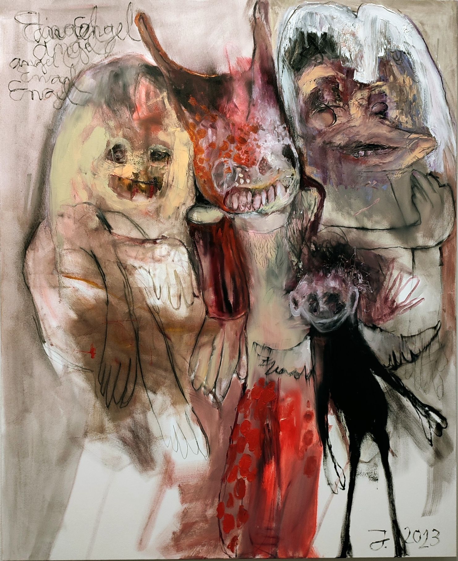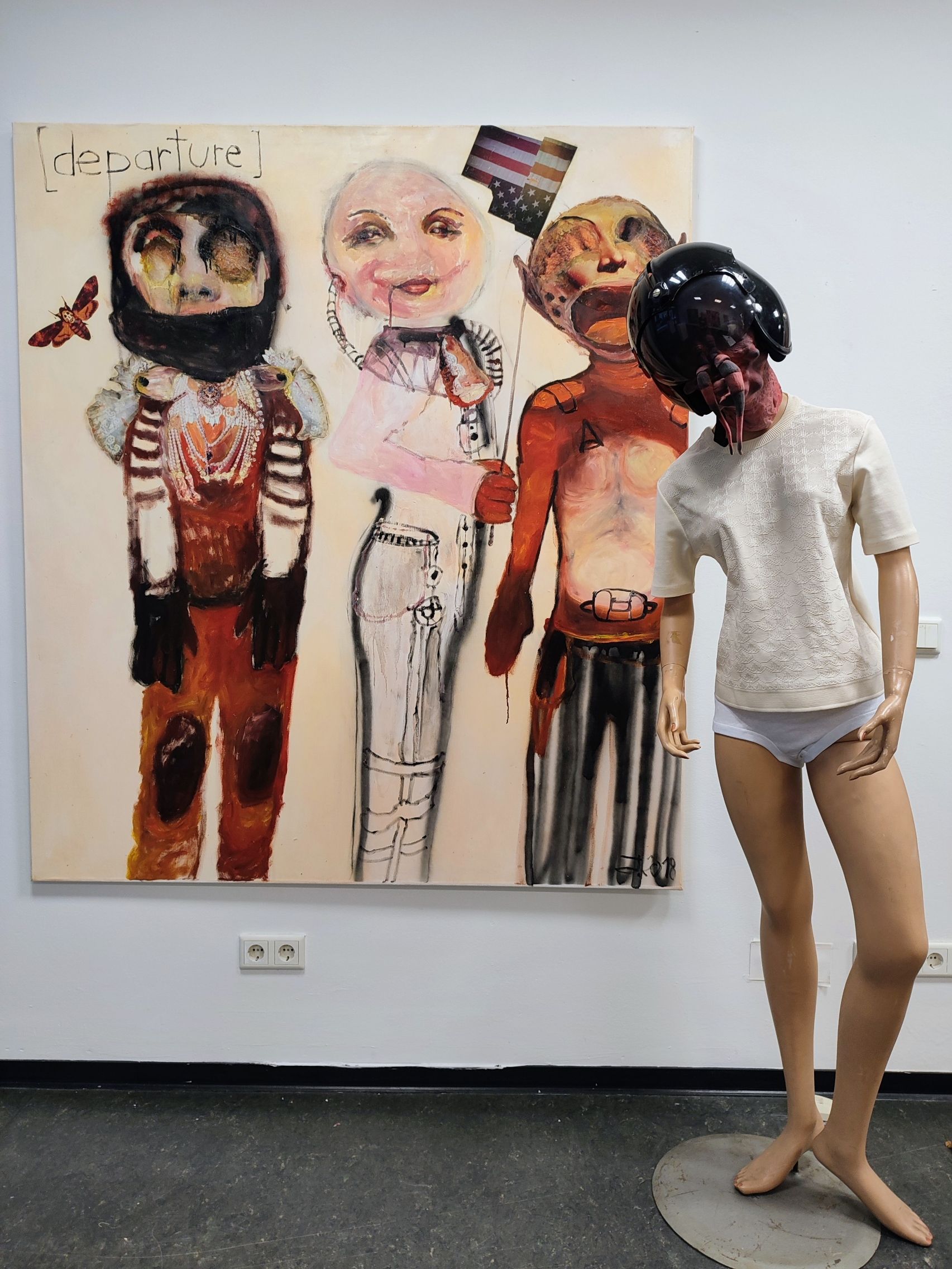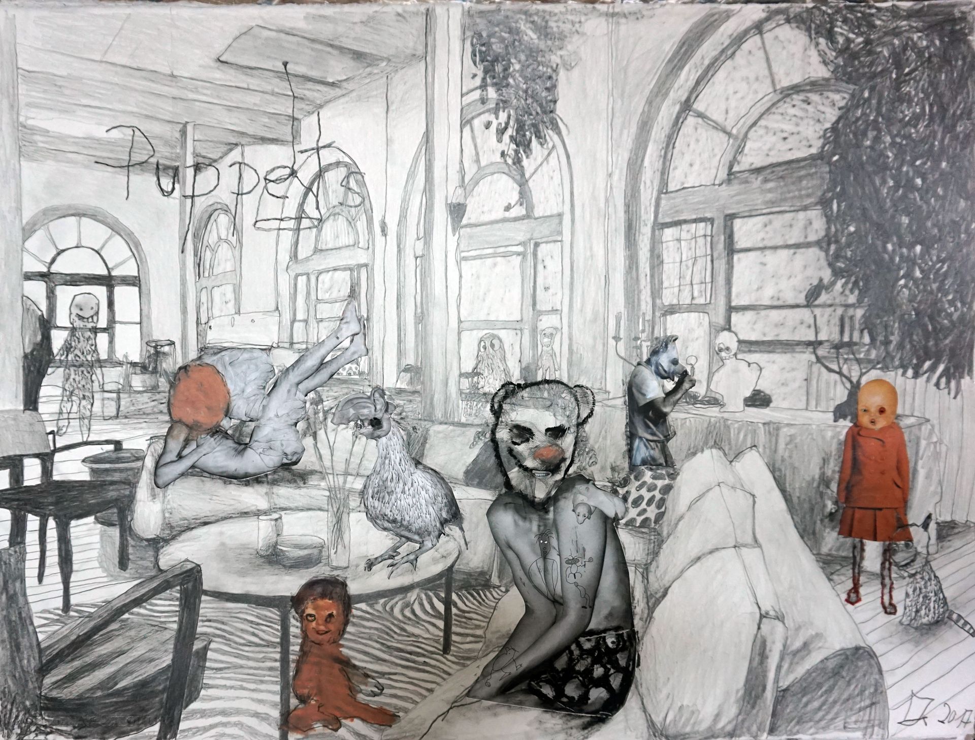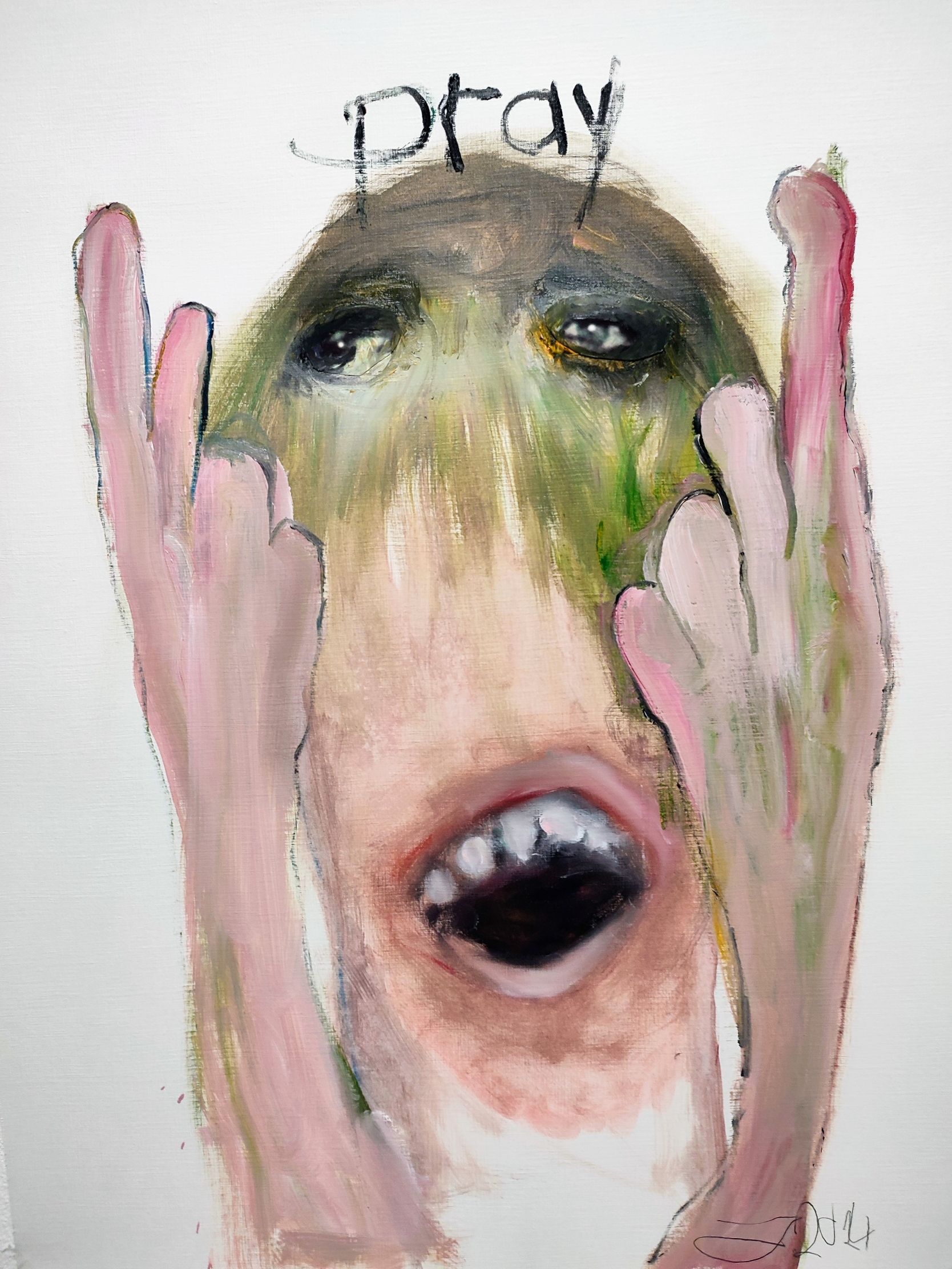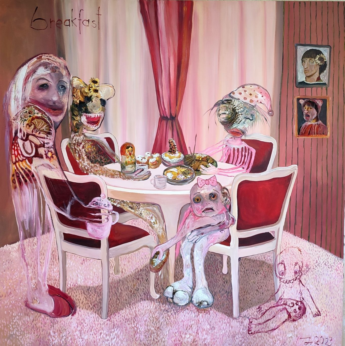 I´m inspired by the following artists. Francis Bacon, Paul Mc Carthy, Georg Grosz, Cindy Sherman but I`m not very ambitious in art history, so I often work very free without having some imaginations from other artists in my mind. I think that is the reason of the independence of my paintings. In my education, during my studies I learned a lot about Georg Grosz. I try to make satire paintings for the present time, we live in today.