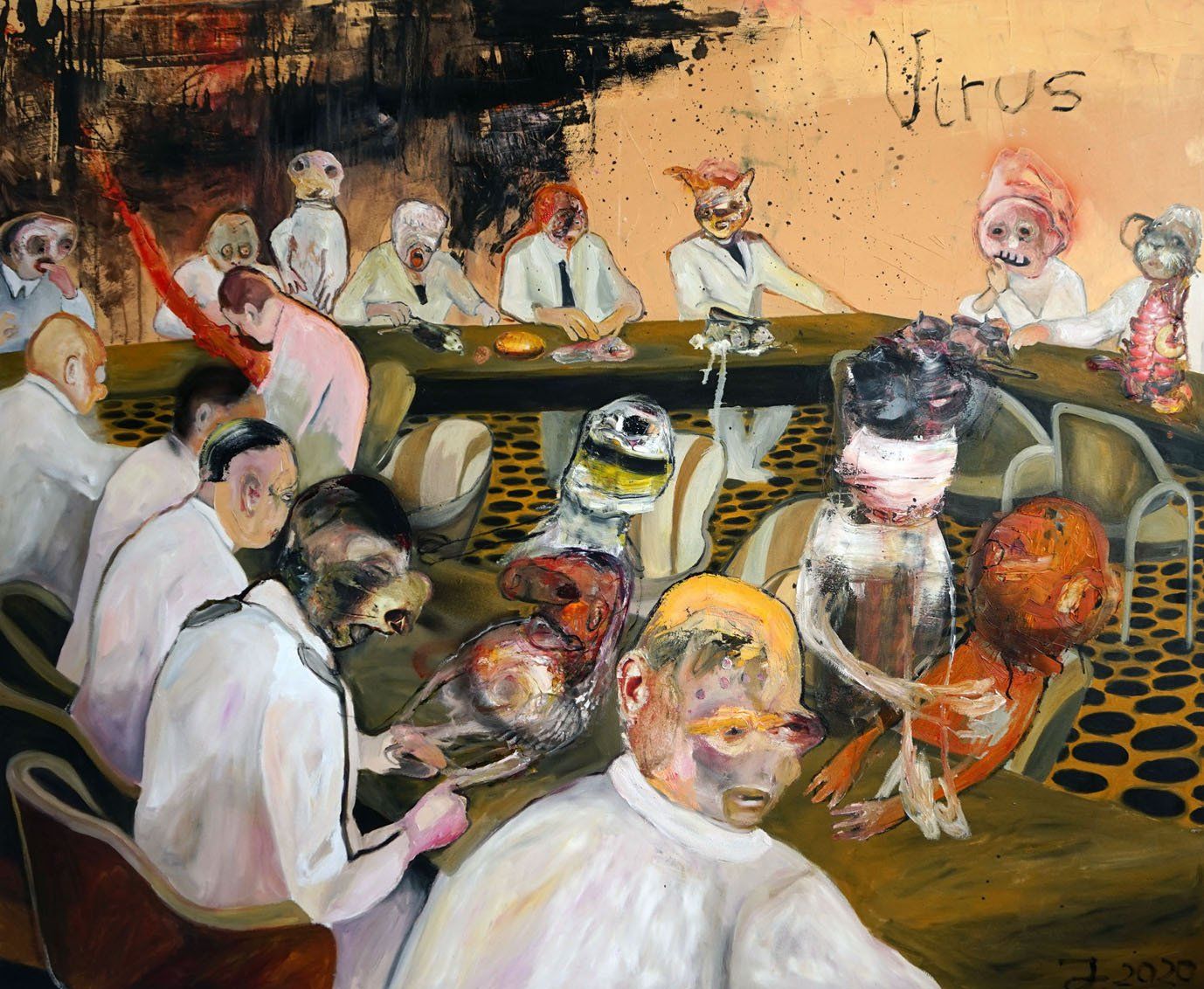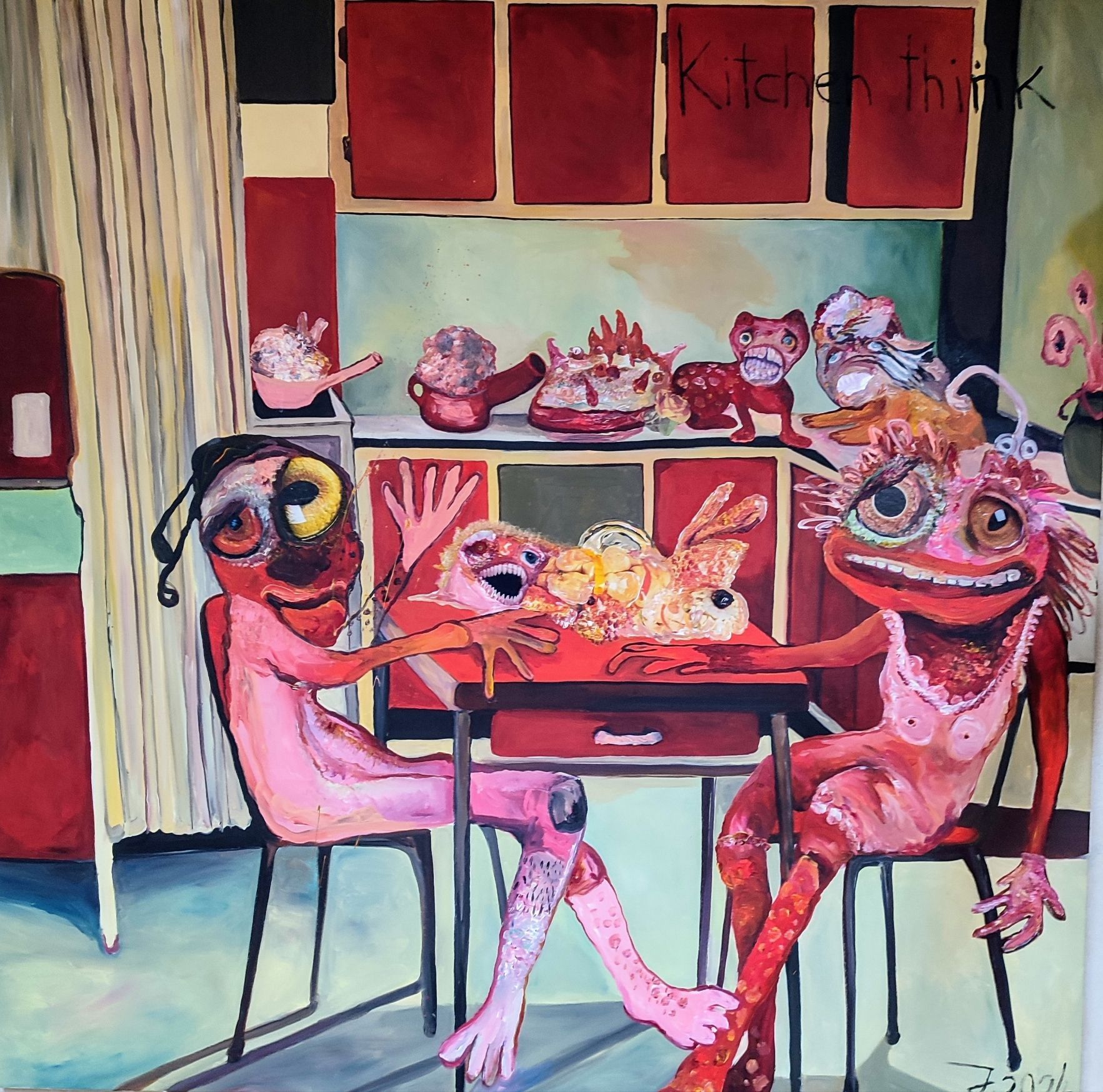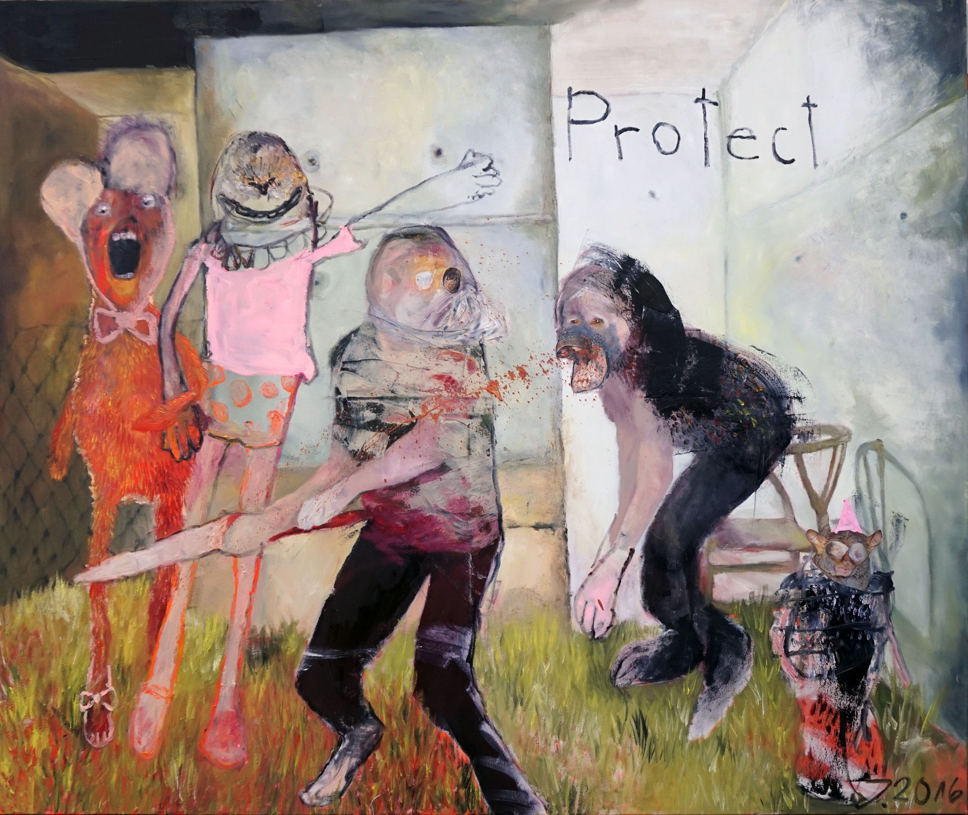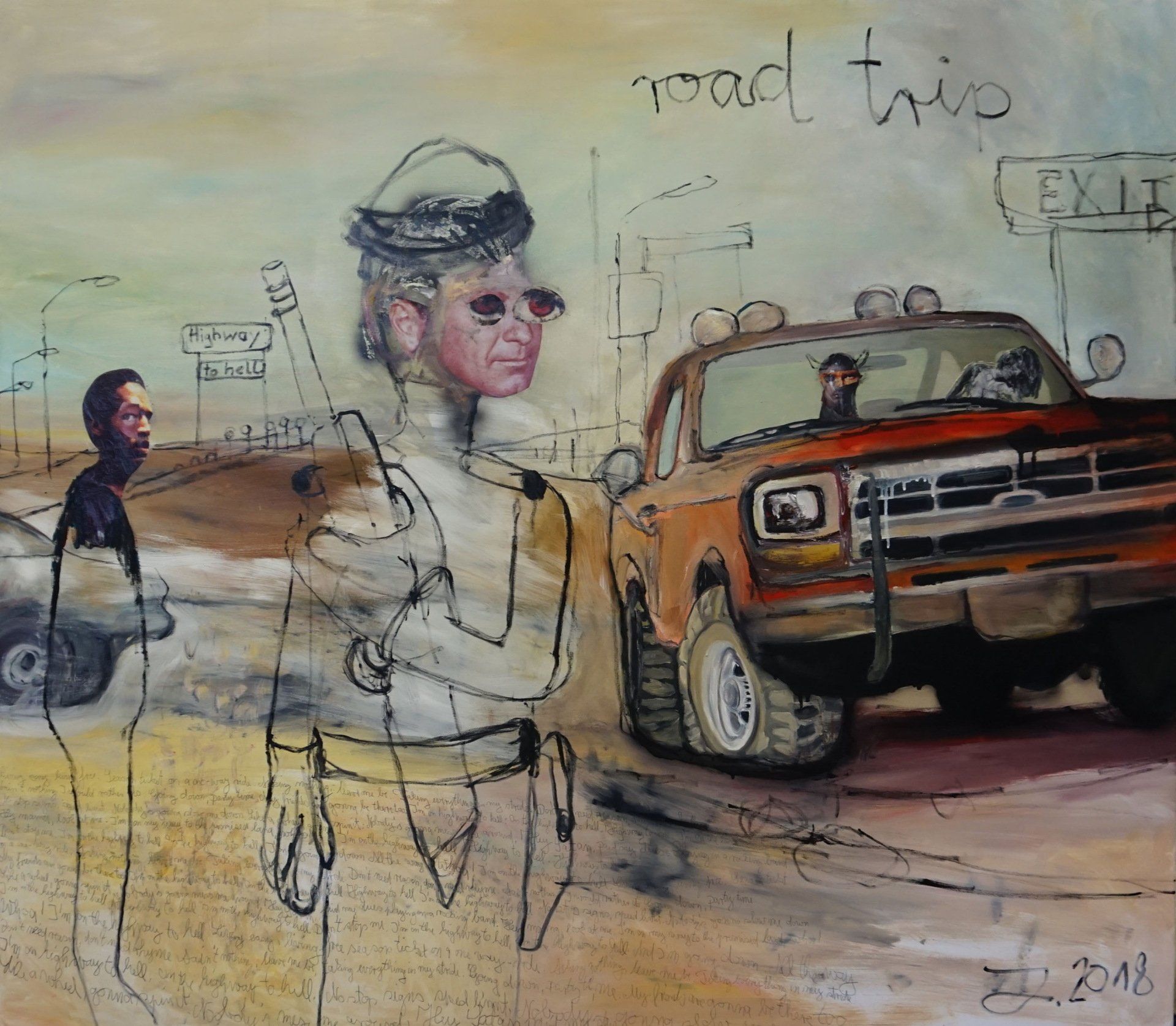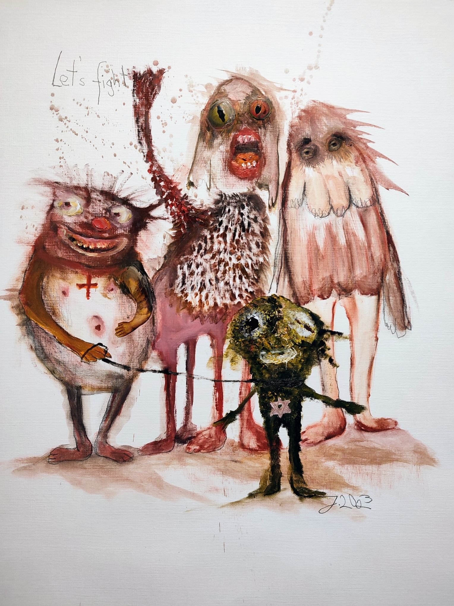 I´m inspired by the following artists. Francis Bacon, Paul Mc Carthy, Georg Grosz, Cindy Sherman but I`m not very ambitious in art history, so I often work very free without having some imaginations from other artists in my mind. I think that is the reason of the independence of my paintings. In my education, during my studies I learned a lot about Georg Grosz. I try to make satire paintings for the present time, we live in today.