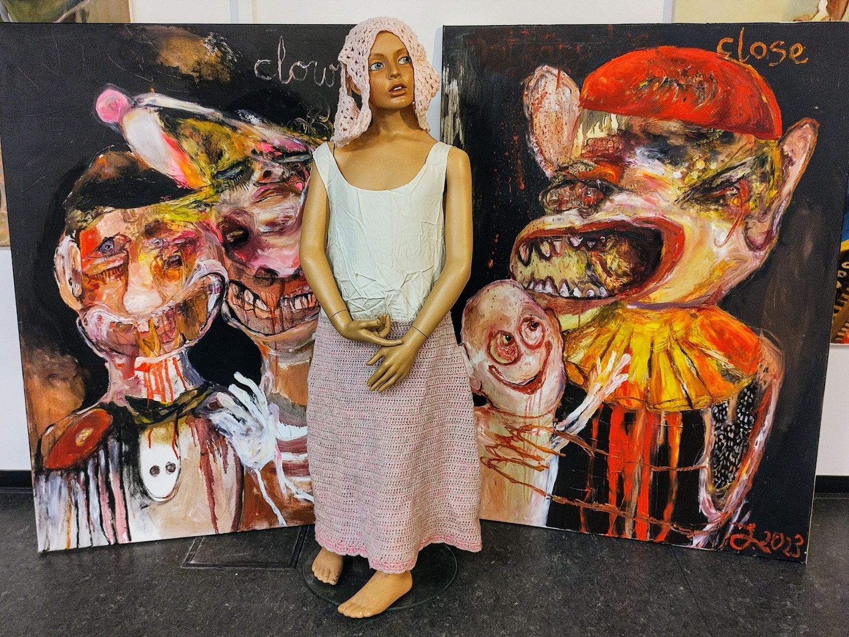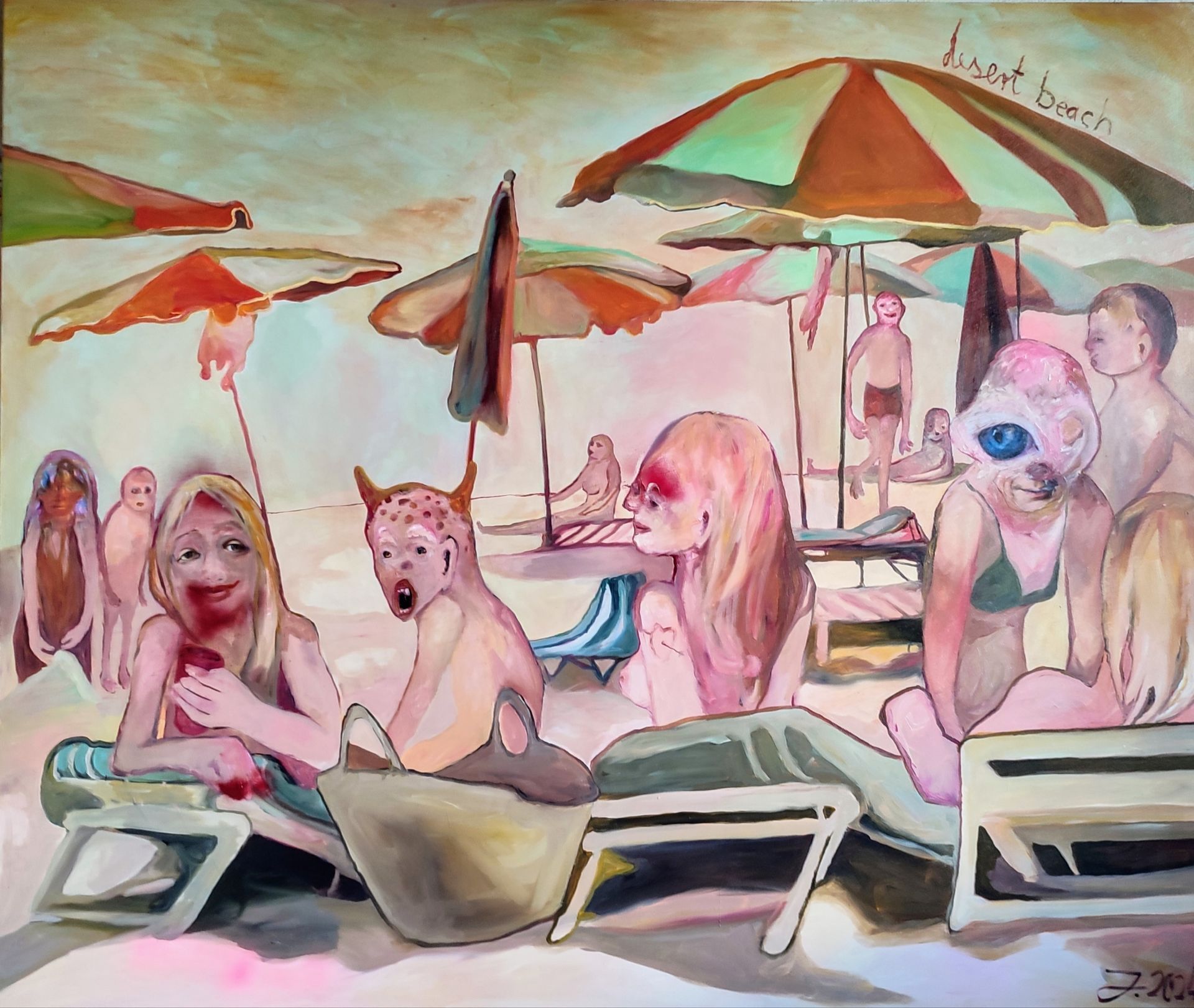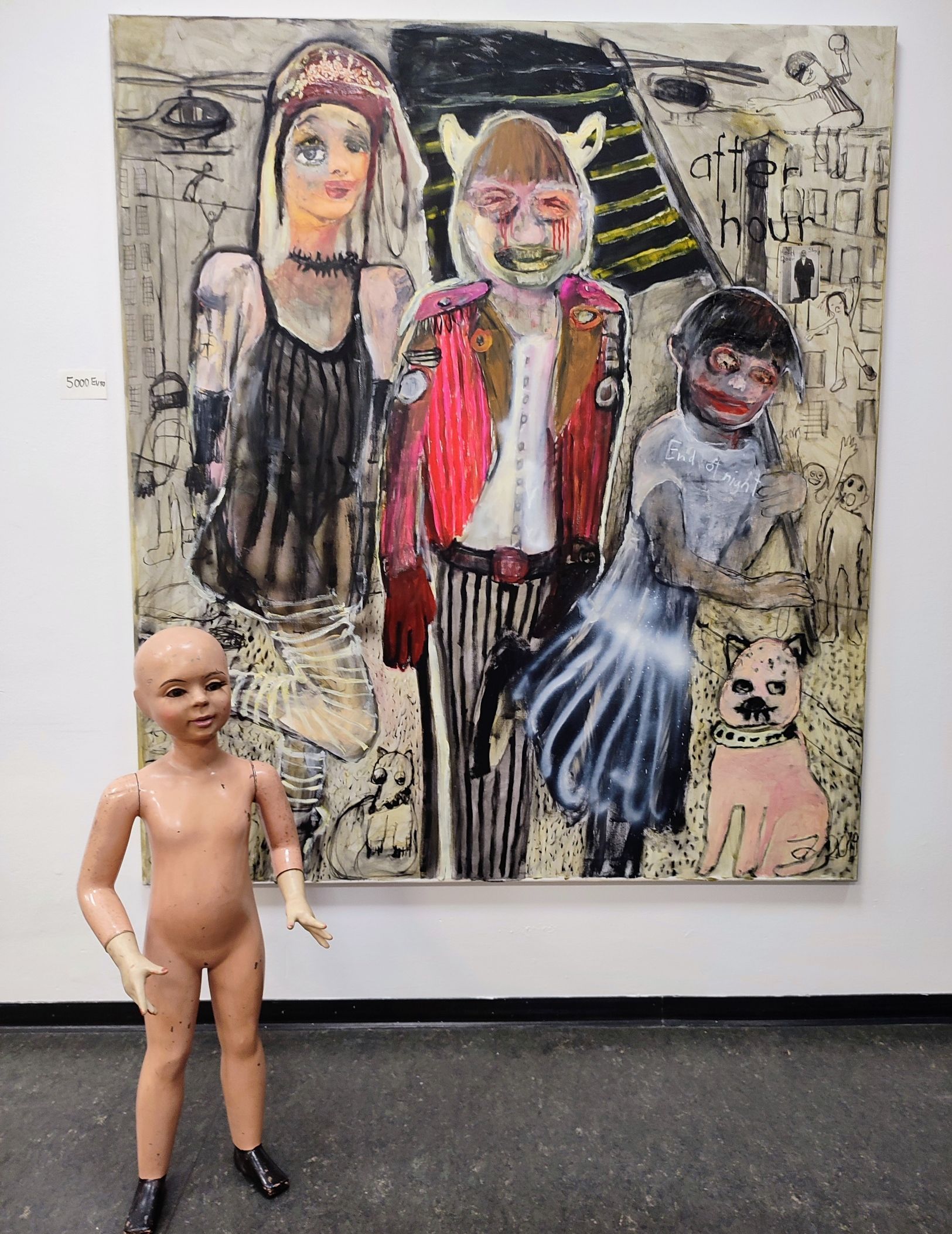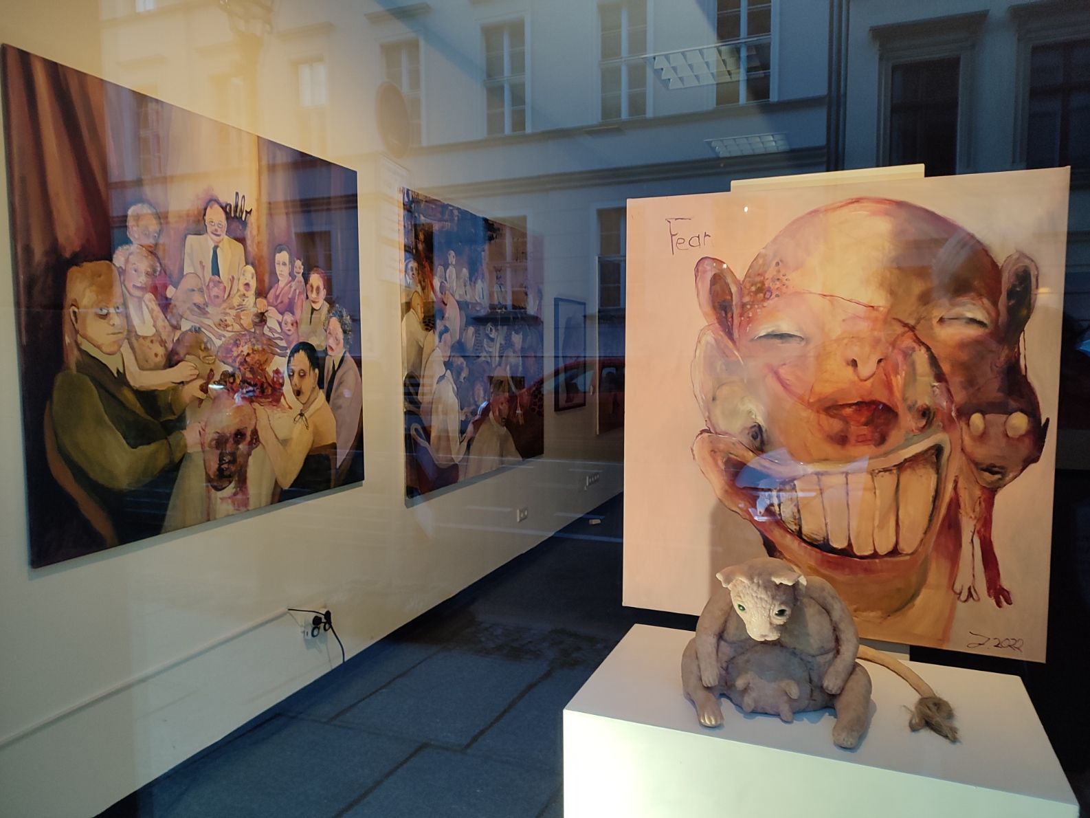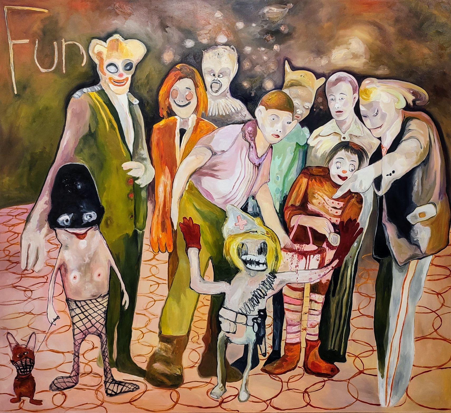 I´m inspired by the following artists. Francis Bacon, Paul Mc Carthy, Georg Grosz, Cindy Sherman but I`m not very ambitious in art history, so I often work very free without having some imaginations from other artists in my mind. I think that is the reason of the independence of my paintings. In my education, during my studies I learned a lot about Georg Grosz. I try to make satire paintings for the present time, we live in today.