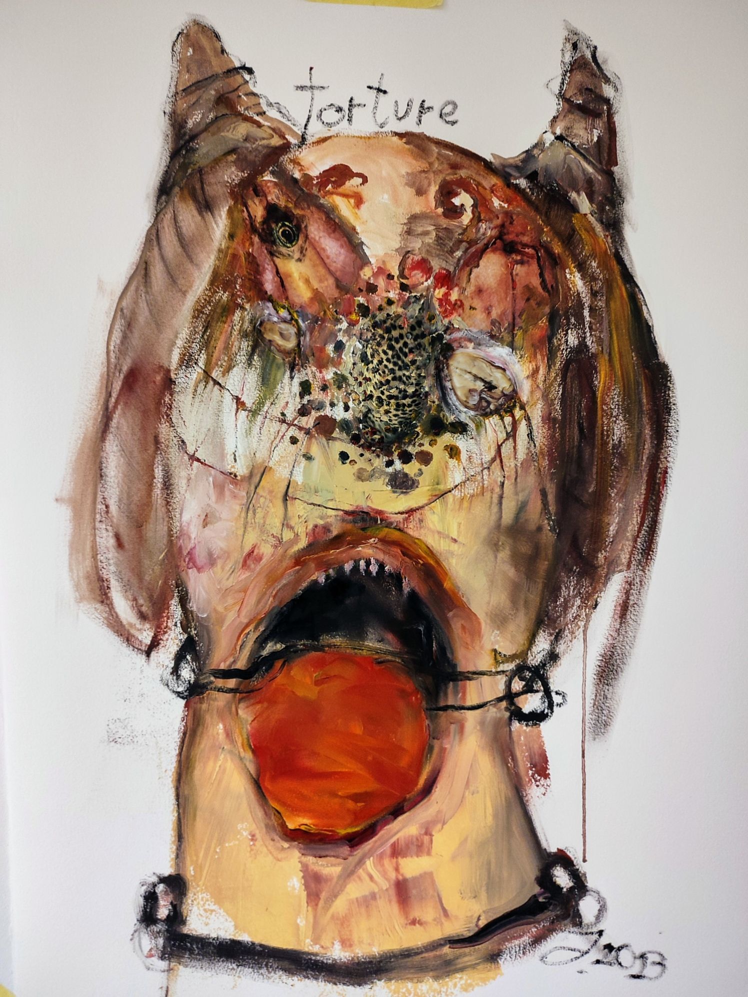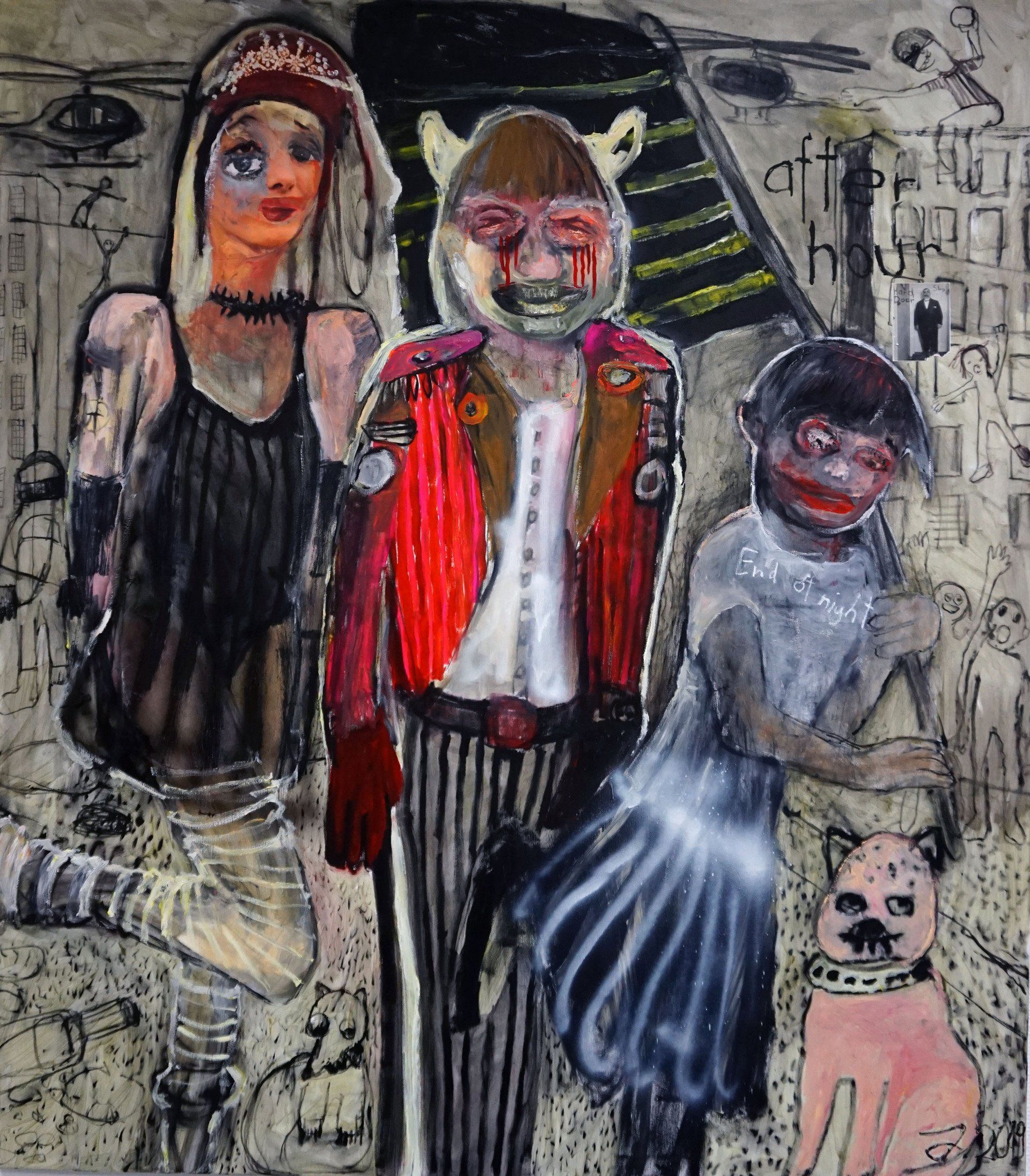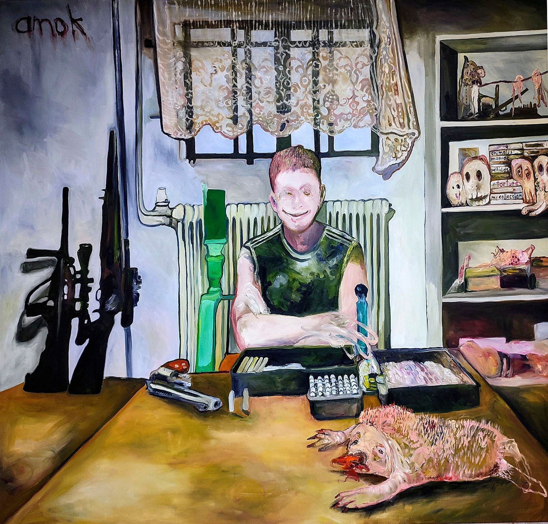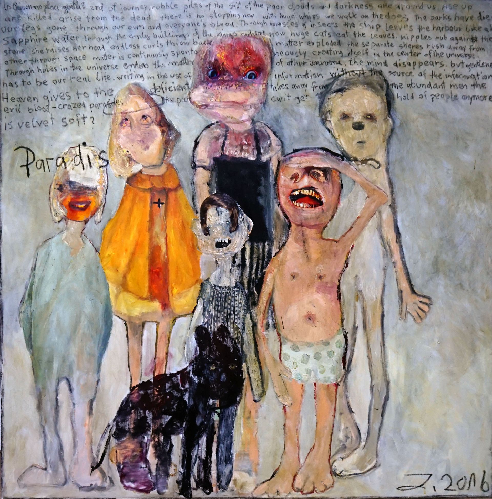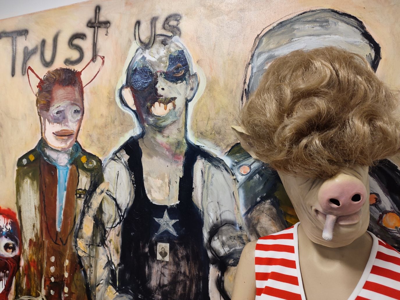 I´m inspired by the following artists. Francis Bacon, Paul Mc Carthy, Georg Grosz, Cindy Sherman but I`m not very ambitious in art history, so I often work very free without having some imaginations from other artists in my mind. I think that is the reason of the independence of my paintings. In my education, during my studies I learned a lot about Georg Grosz. I try to make satire paintings for the present time, we live in today.