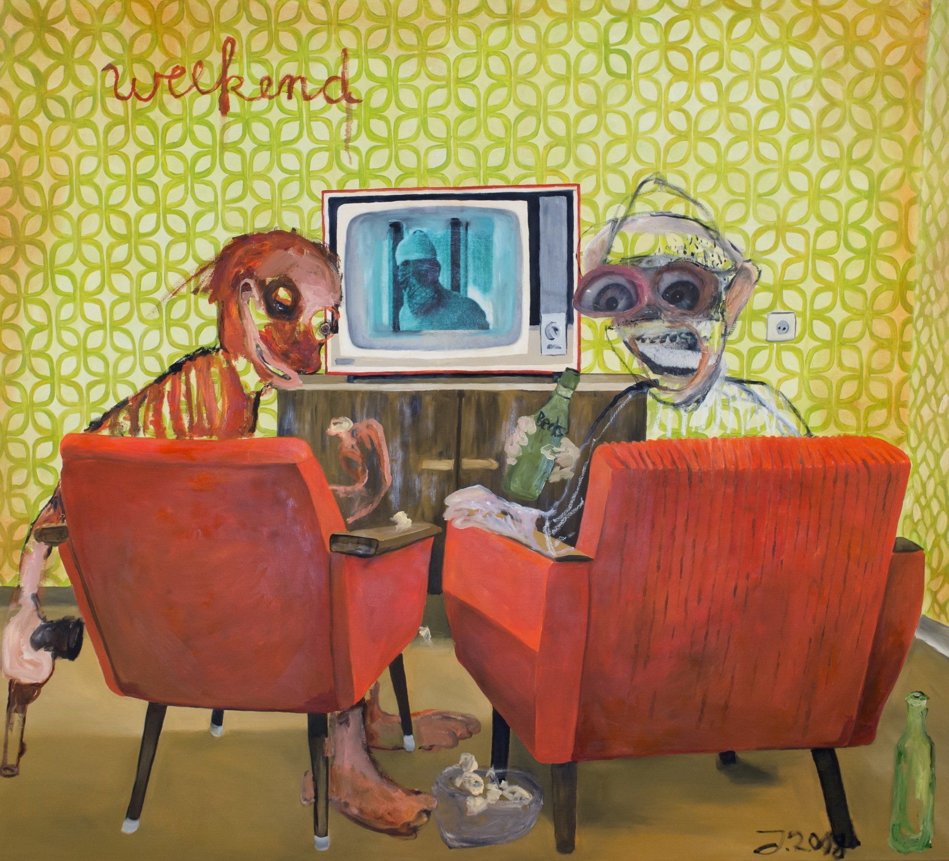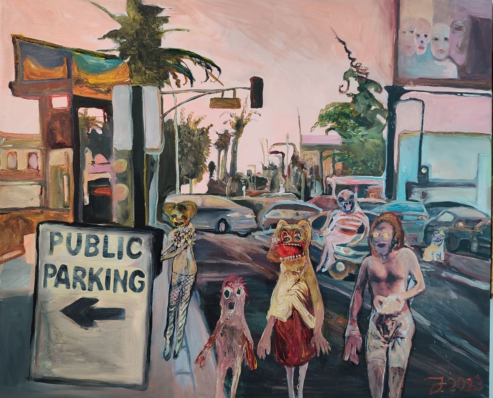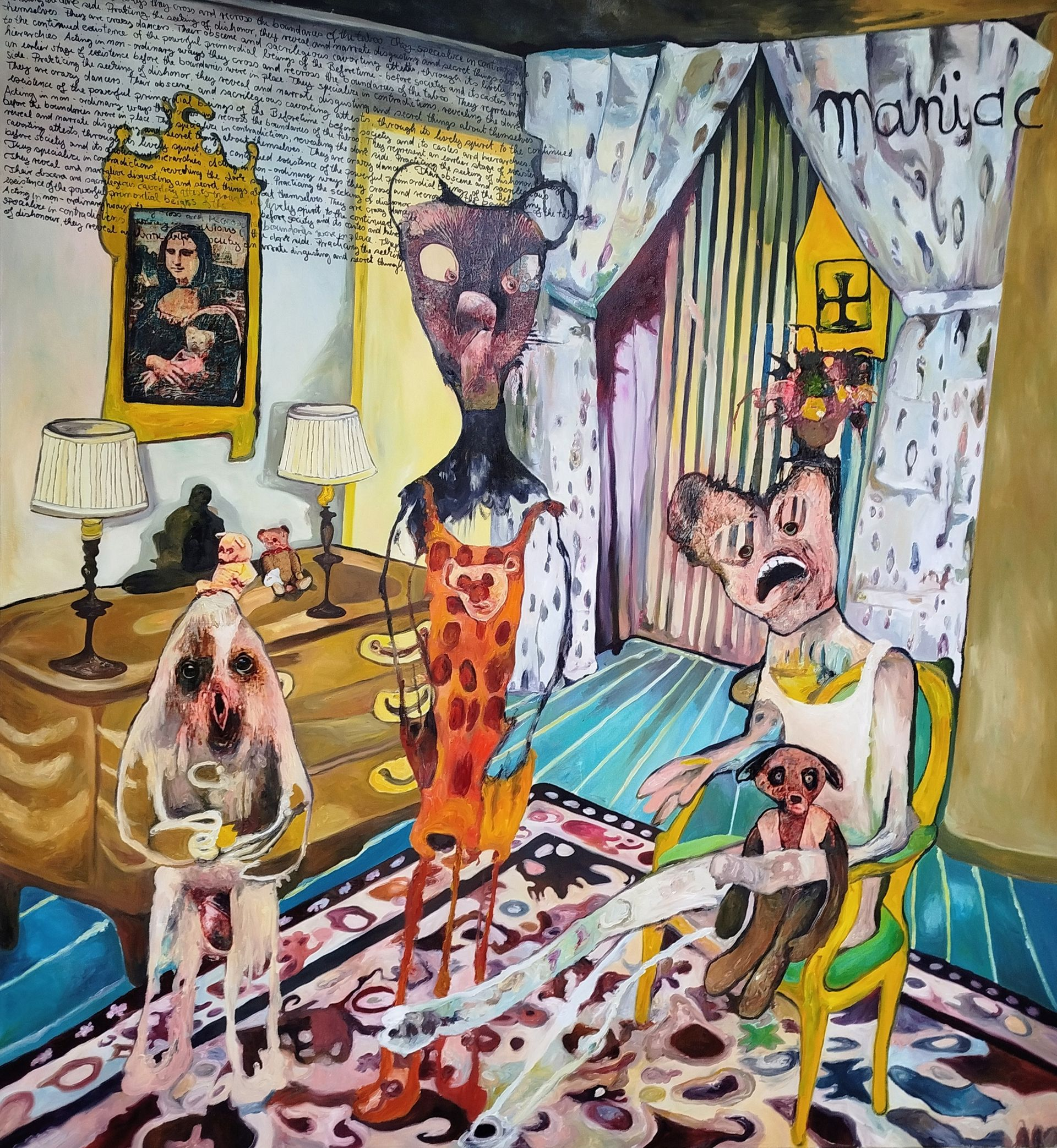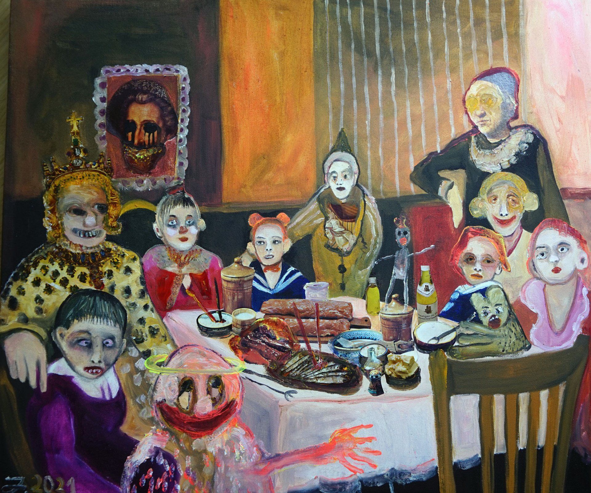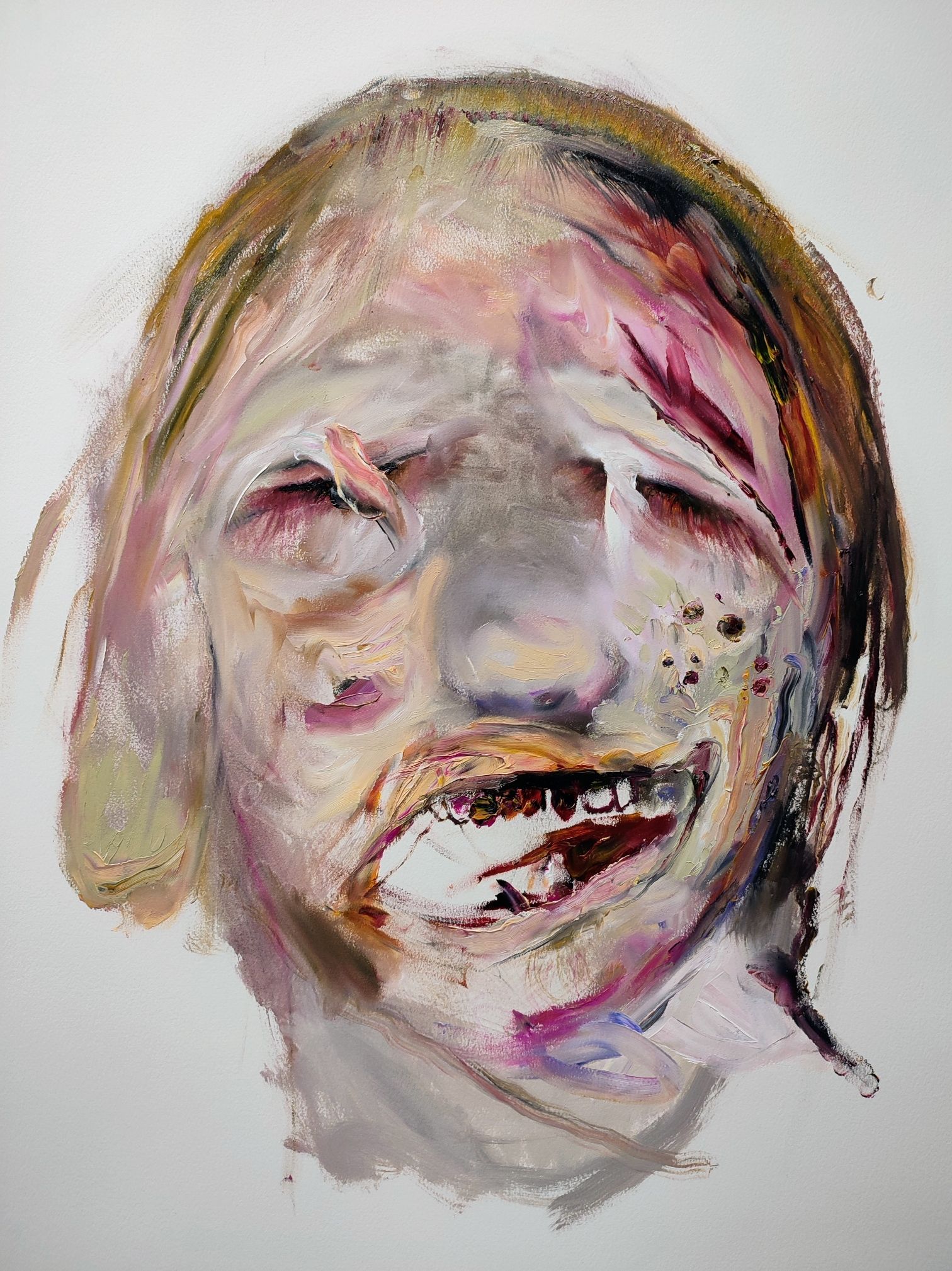I´m inspired by the following artists. Francis Bacon, Paul Mc Carthy, Georg Grosz, Cindy Sherman but I`m not very ambitious in art history, so I often work very free without having some imaginations from other artists in my mind. I think that is the reason of the independence of my paintings. In my education, during my studies I learned a lot about Georg Grosz. I try to make satire paintings for the present time, we live in today.