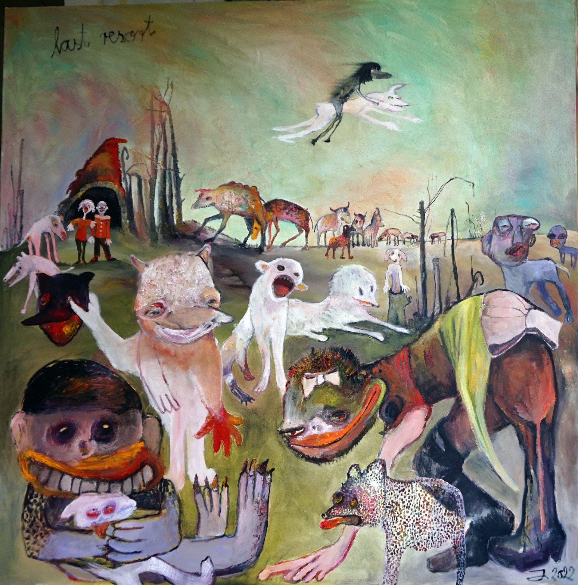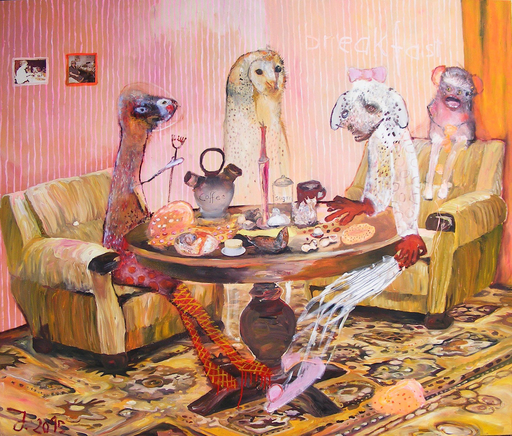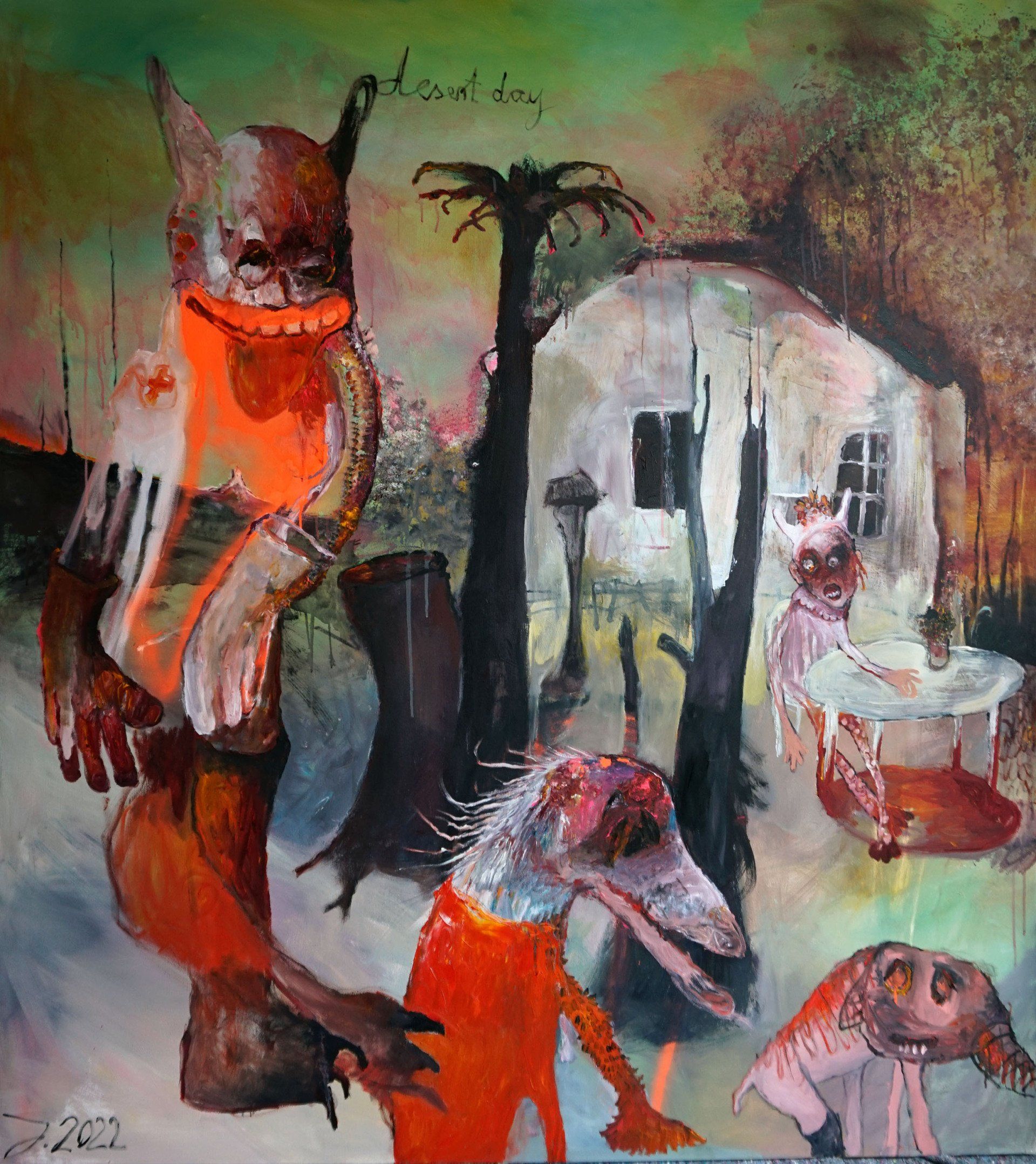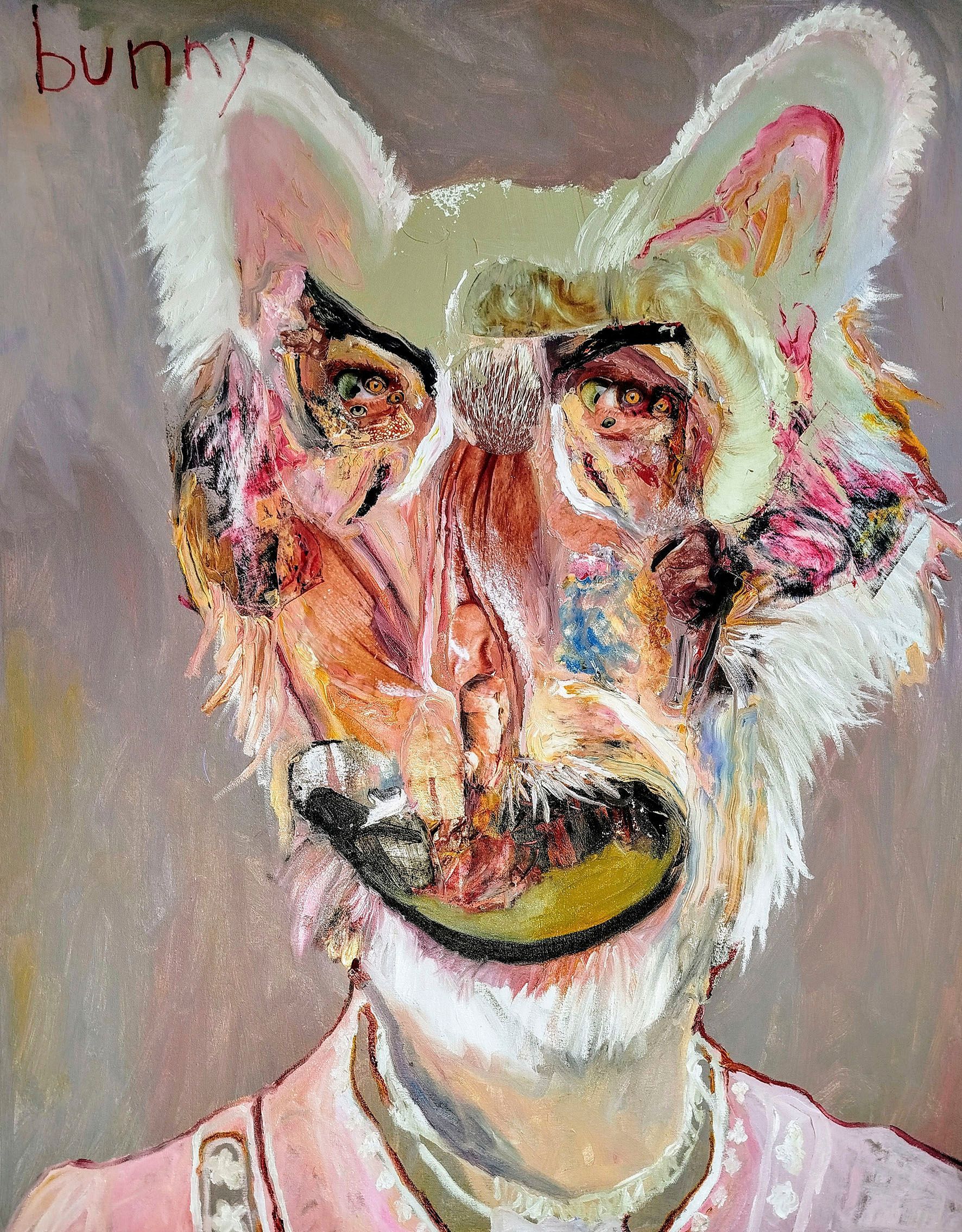 Every painting deals with several of the themes I process throughout my work. There is the anthropomorphism of in my work, but also thoughts, feelings and ideas from outside the world.
