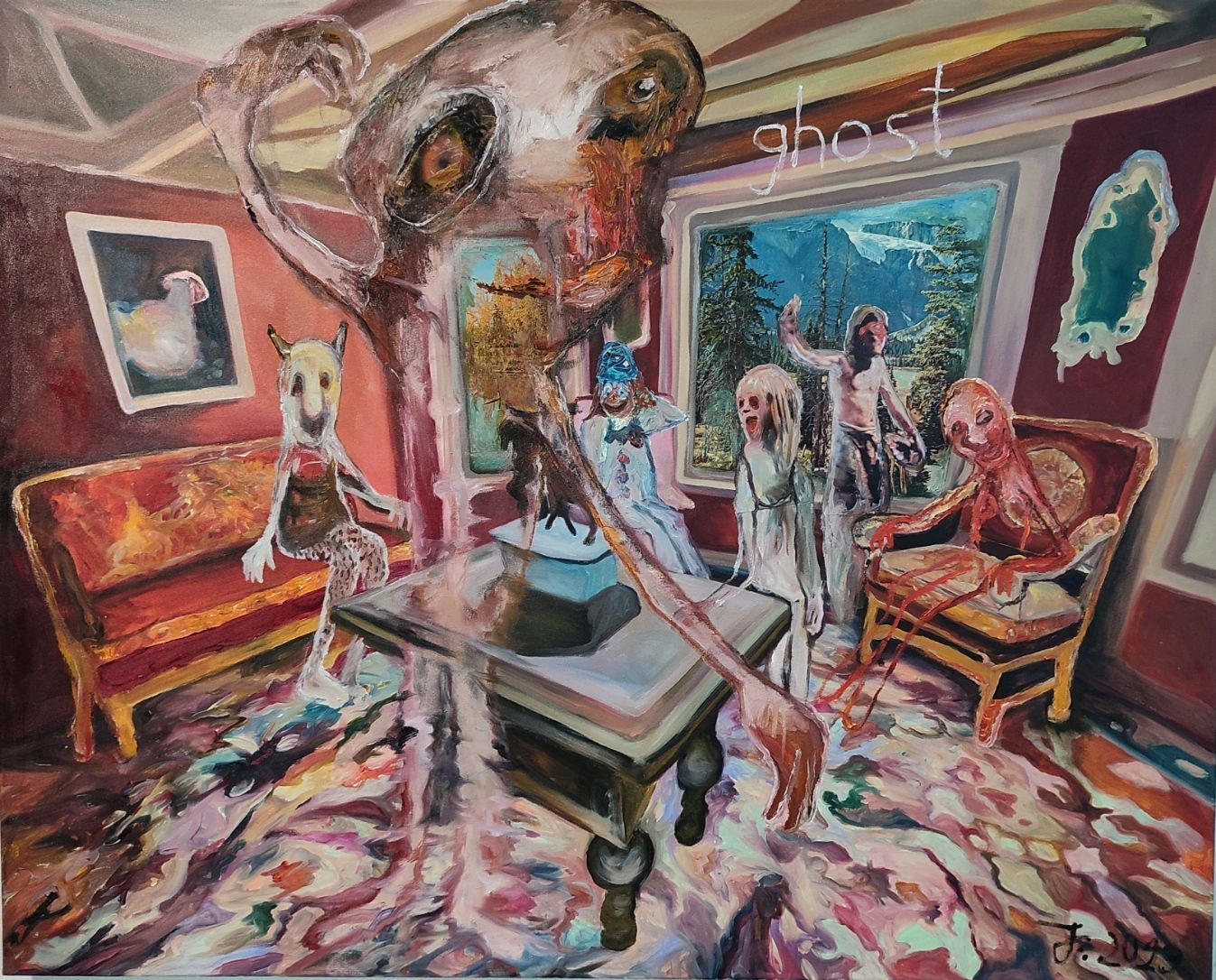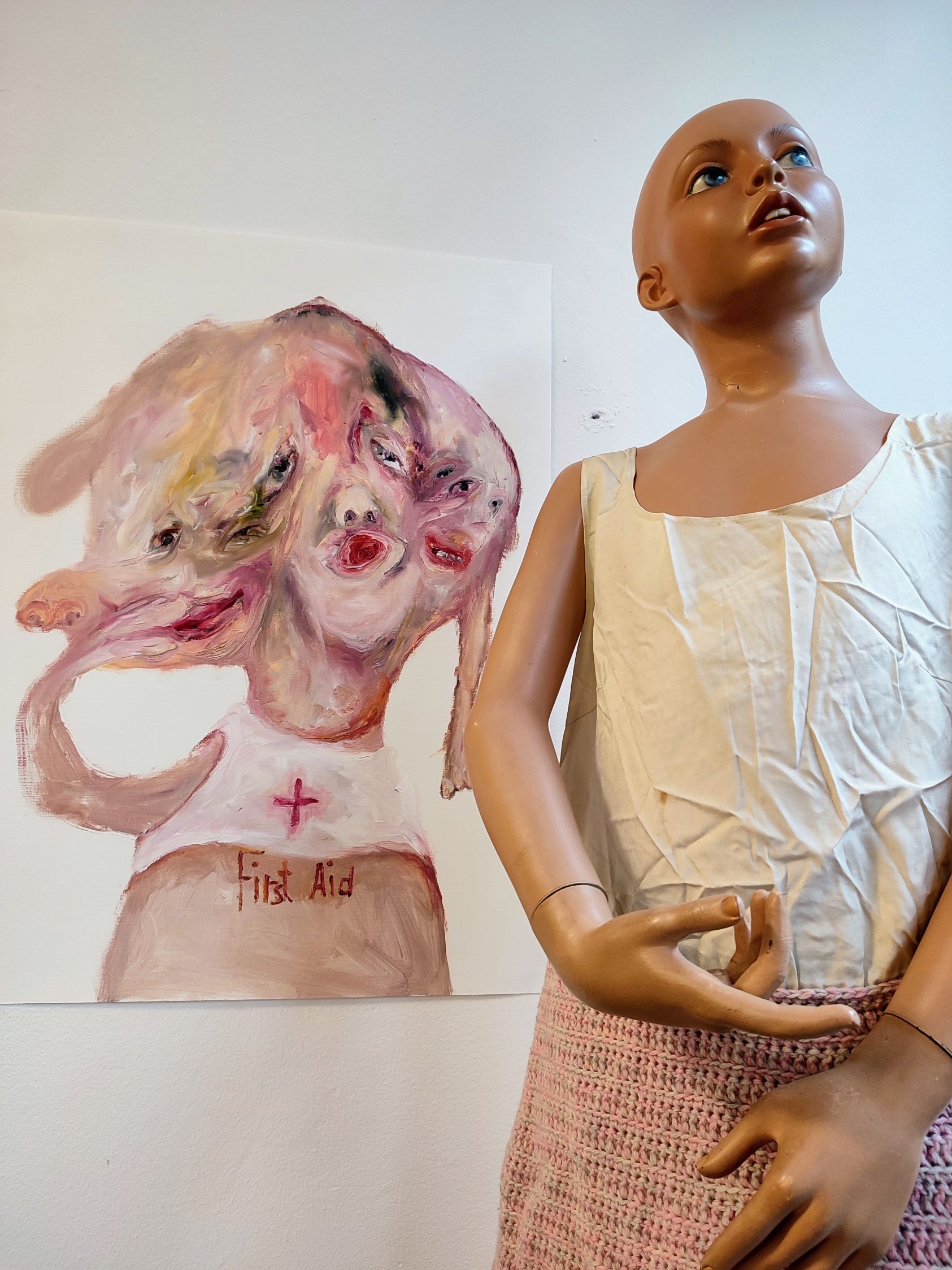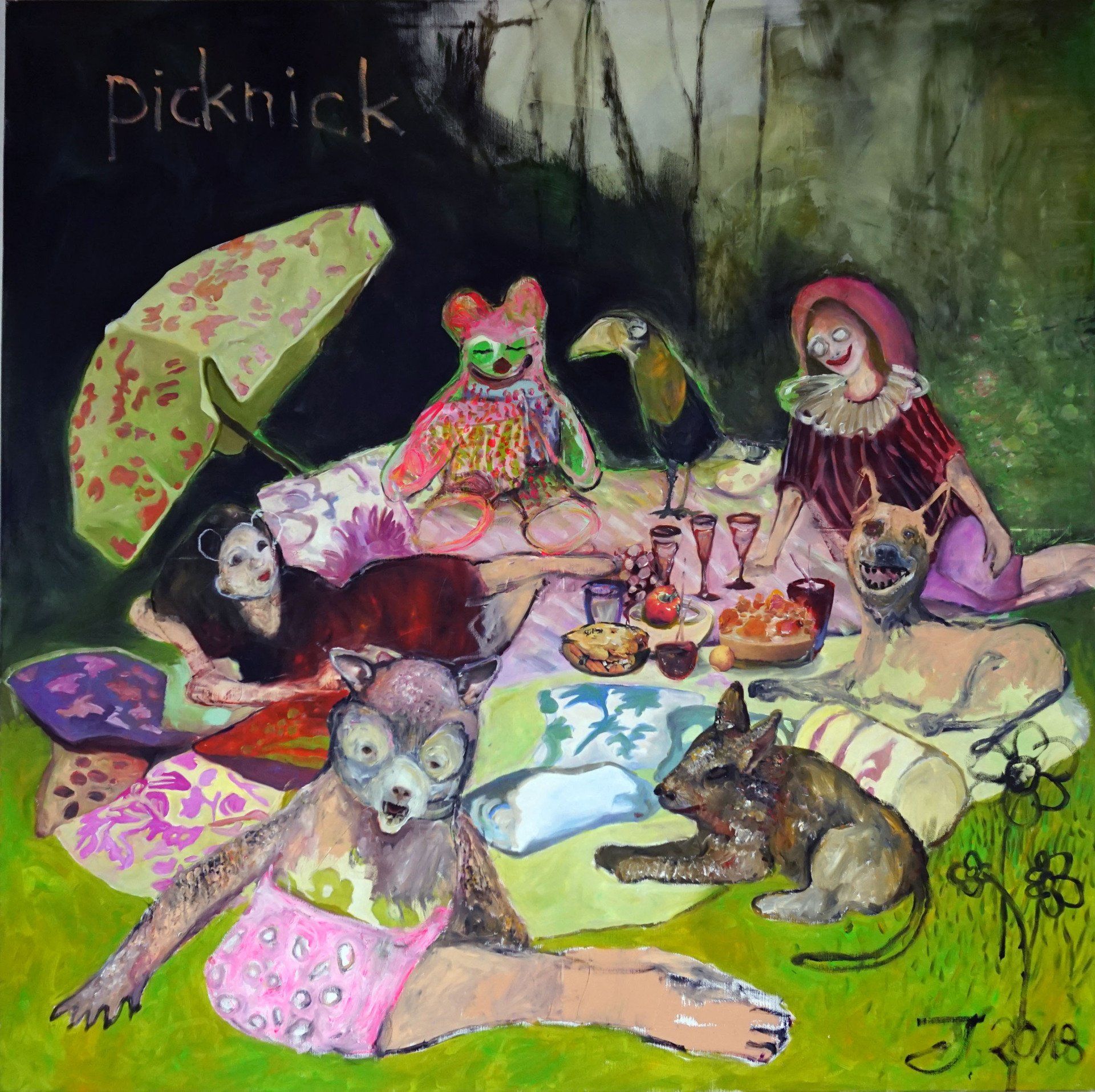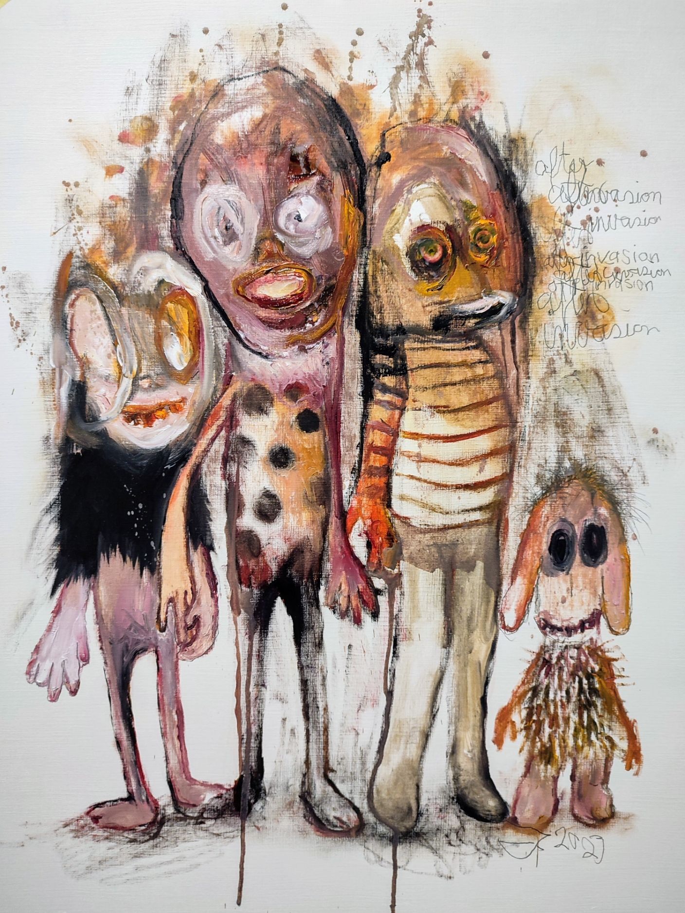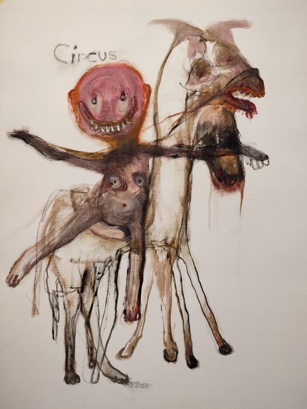 Every painting deals with several of the themes I process throughout my work. There is the anthropomorphism of in my work, but also thoughts, feelings and ideas from outside the world.