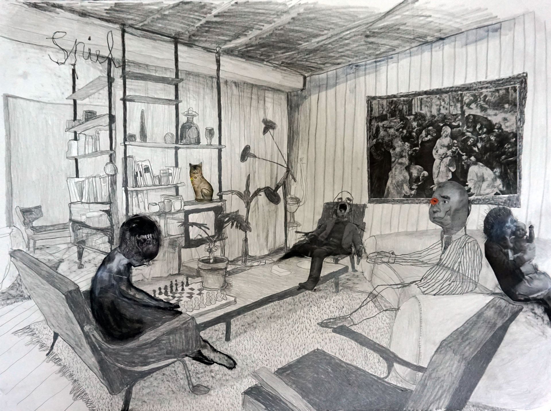 Es entstehen Szenen aus dem kollektiven Bewusstsein des Menschen: Klassenzimmer; Kirchenpredigt; Mahlzeit; Gruppenbild.