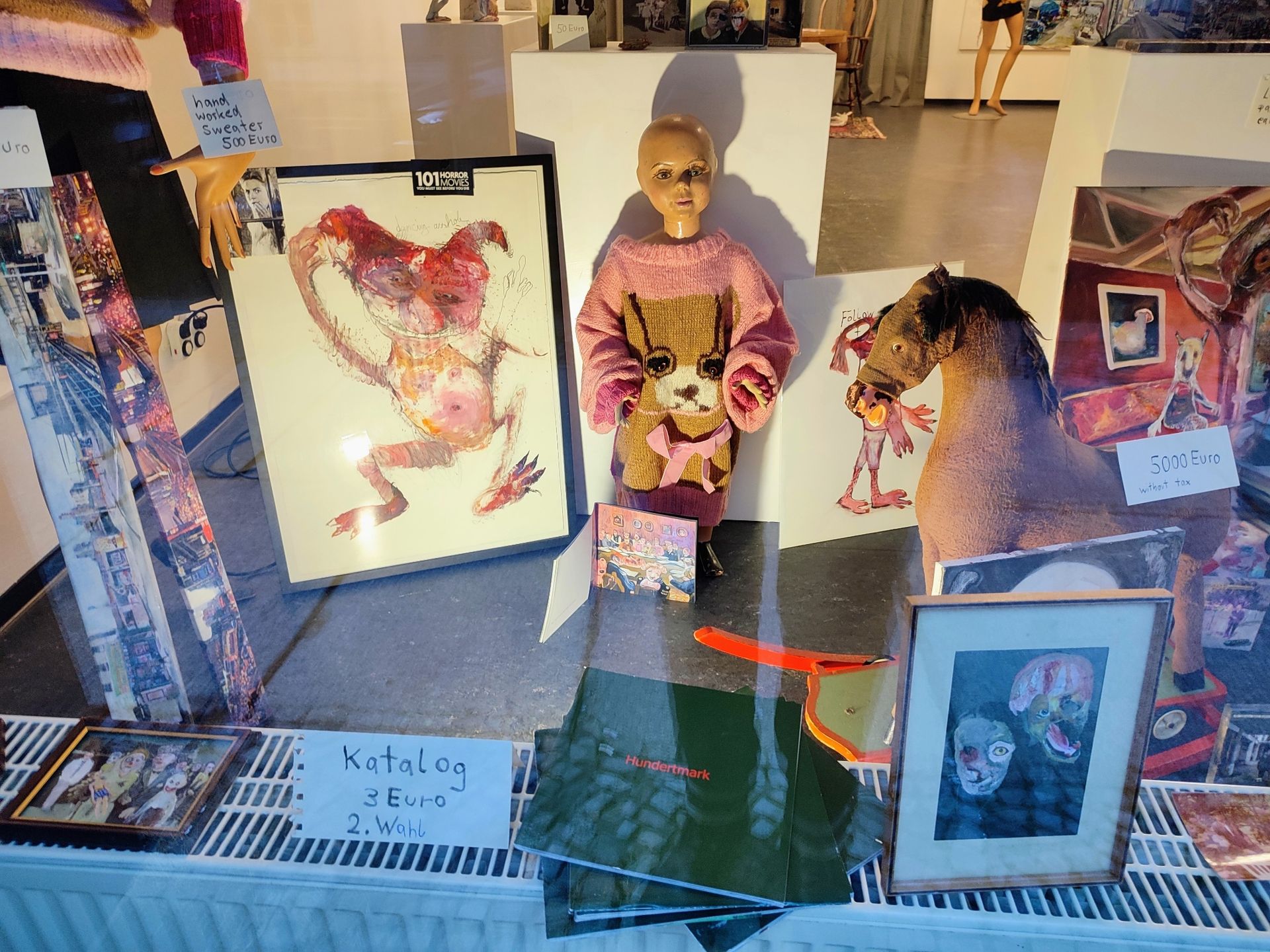 A recurring theme in her work is the absurdity of modern ambitions. Through exaggerated characters and twisted narratives, Hundertmark satirizes society`s obsession with superficial success. Her grotesque figures might appear clownish or monstrous at first glance, but they always carry a kernel of truth, reflecting the quiet despair and contradictions of everyday life.