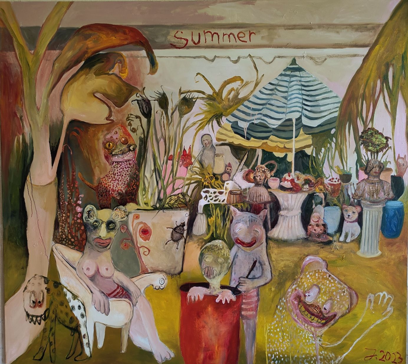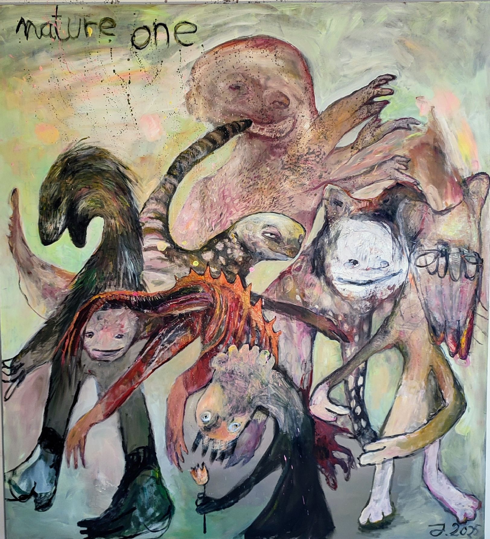 In a world that increasingly filters discomfort through polished surfaces and curated illusions, Juliane Hundertmark brings a raw, unfiltered perspective through her singular blend of visual storytelling. Based in Berlin since 2005, the German painter has forged a reputation for her eccentrically layered work, where grotesque humor and social critique coexist in unsetting harmony. Her practice straddles the line between comic absurdity and tragic reflection, exposing the paradoxes that shape modern existence. Hundertmark doesn`t shy away from confronting societal trauma, instead painting through it, often with a theatrical, burlesque twist that draws the viewer into her sardonic yet deeply human observations.