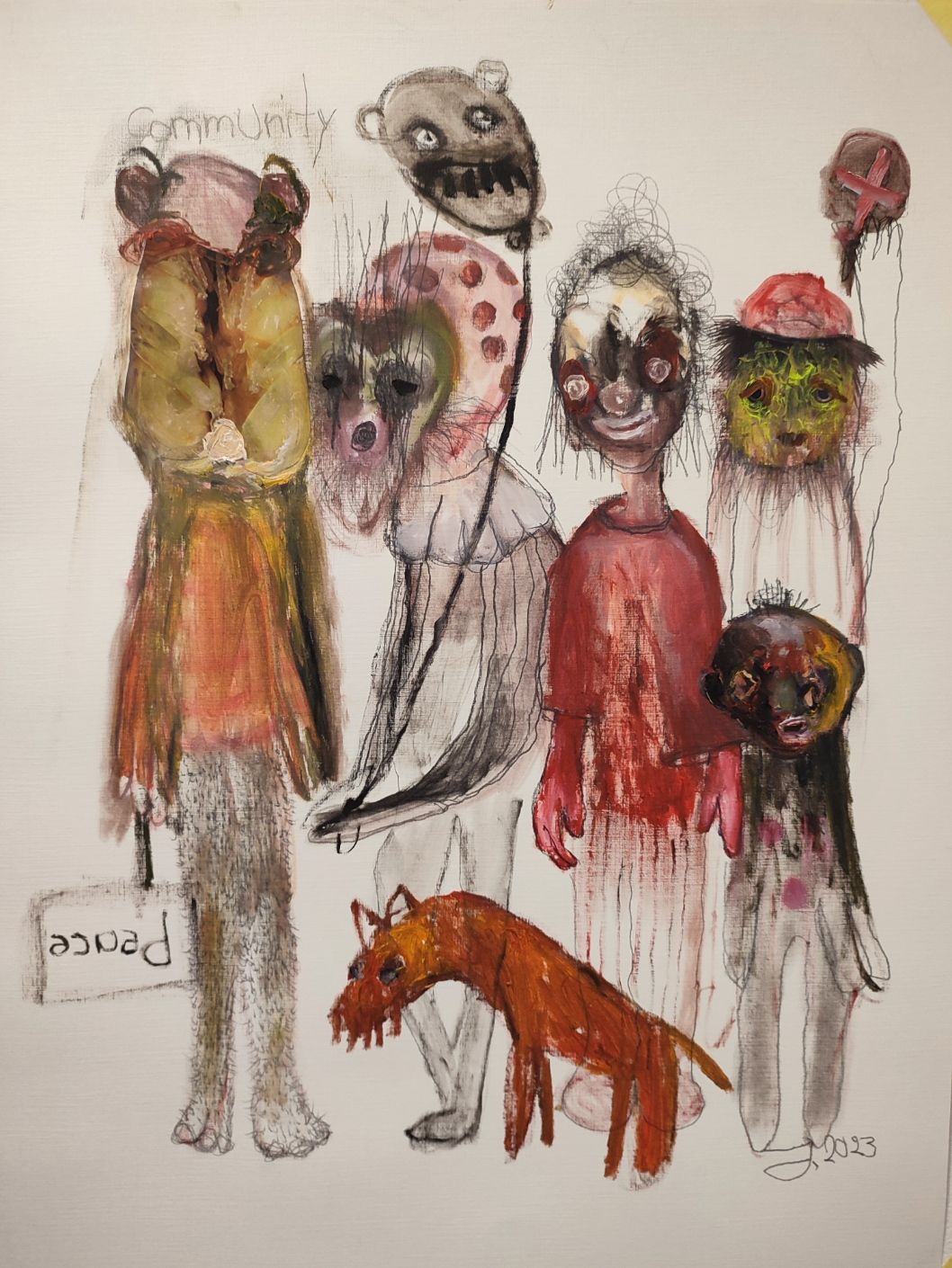 - Group of people paintings, Theater Scenes, the dark and funny side of life.