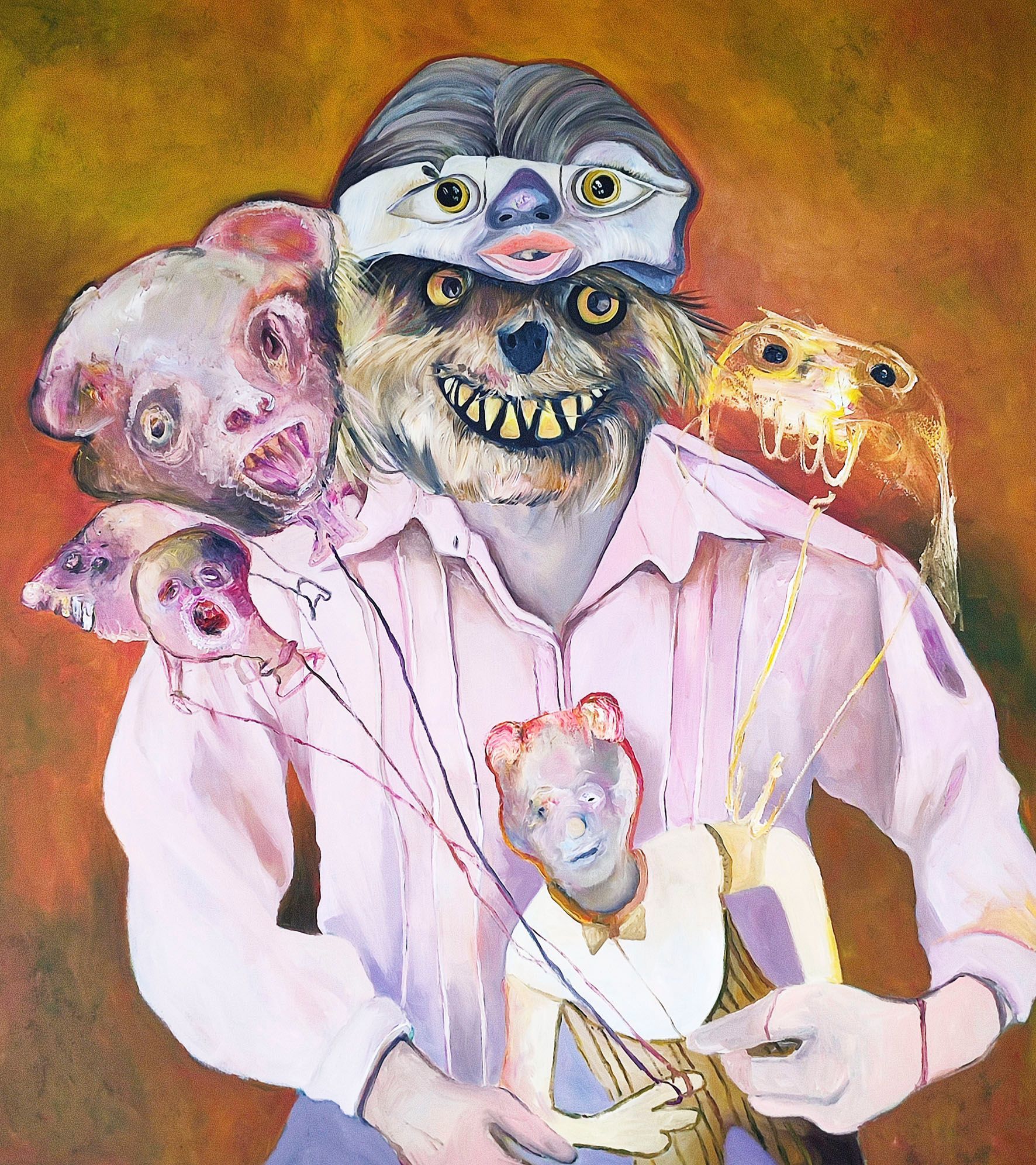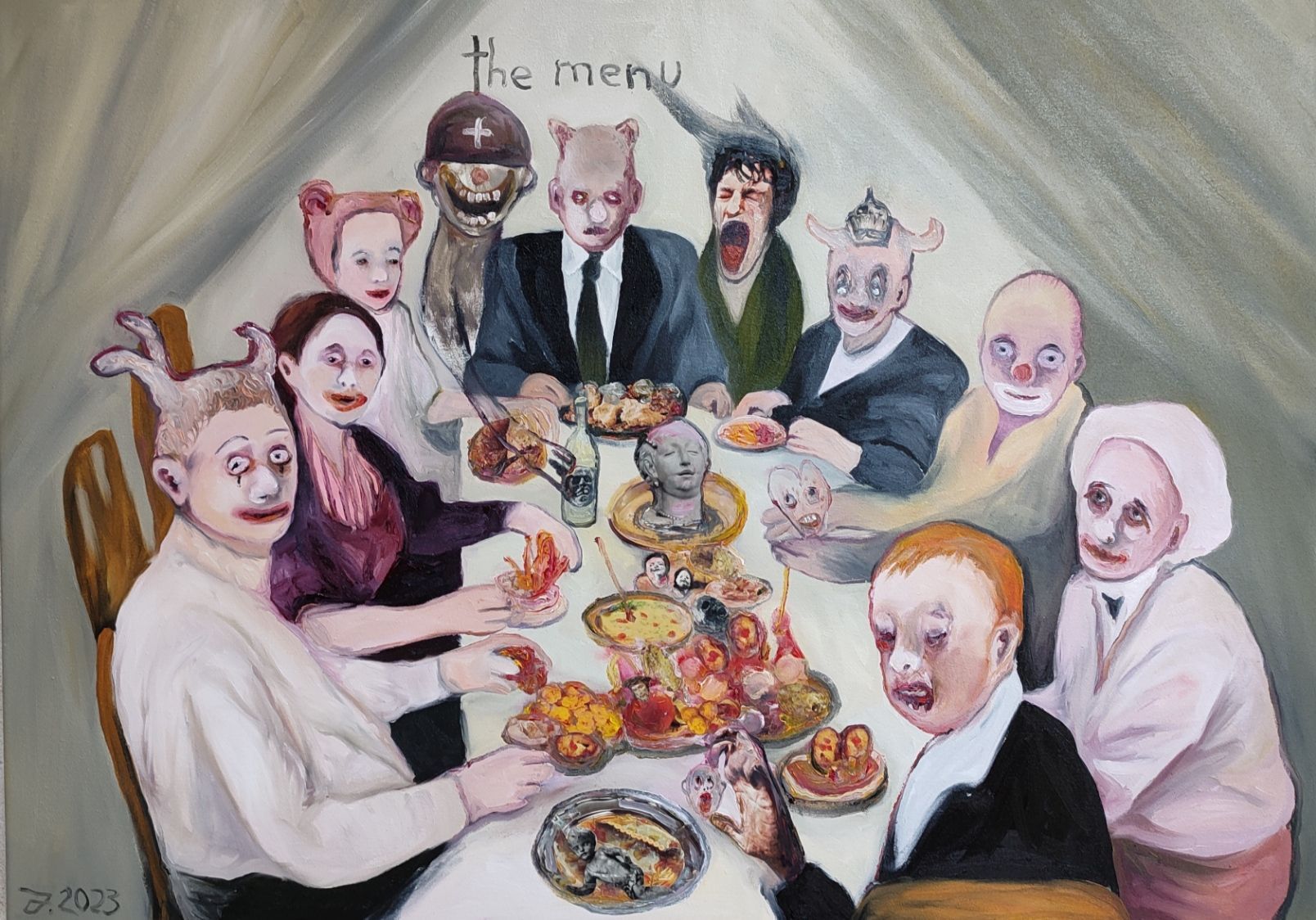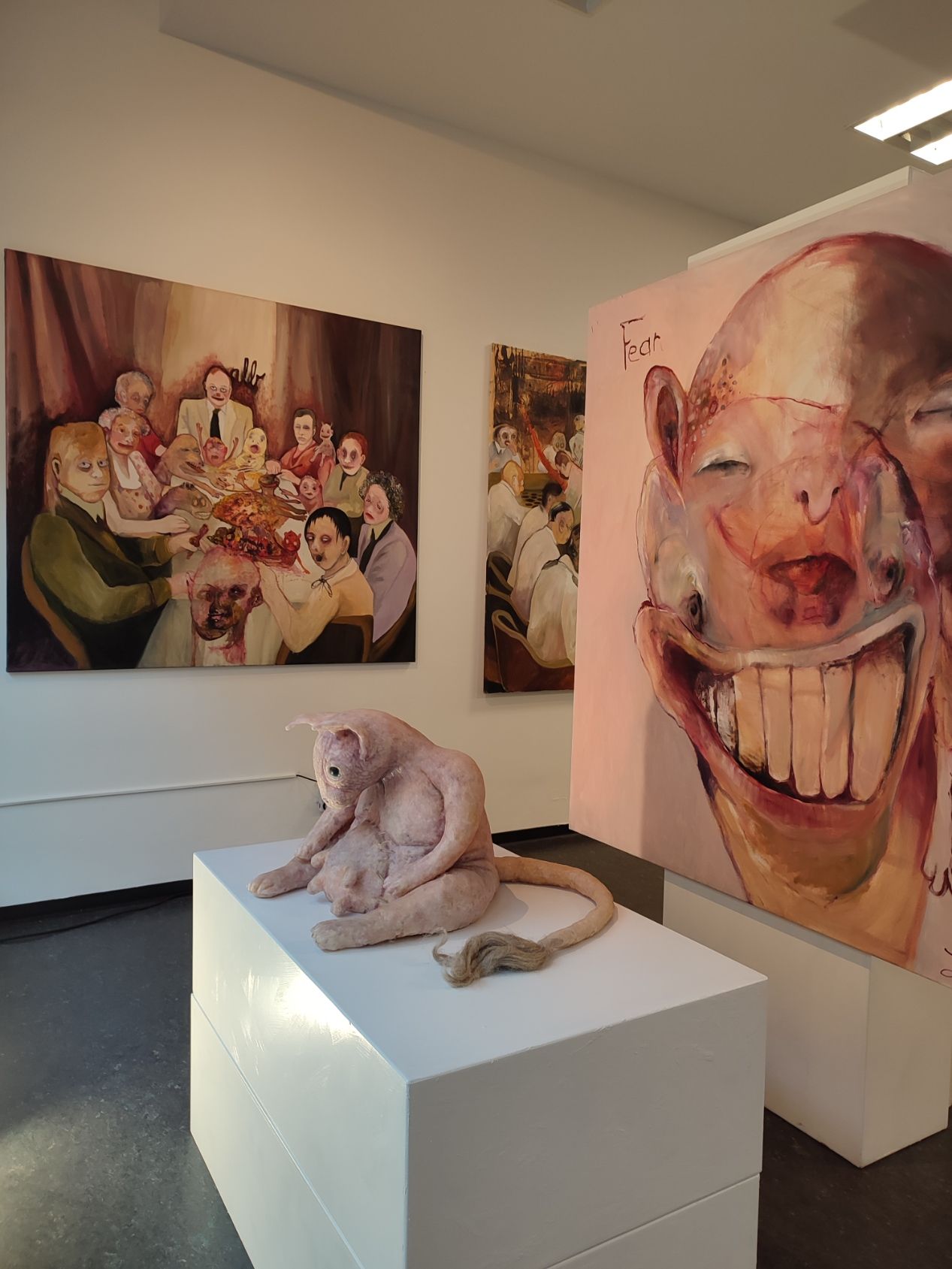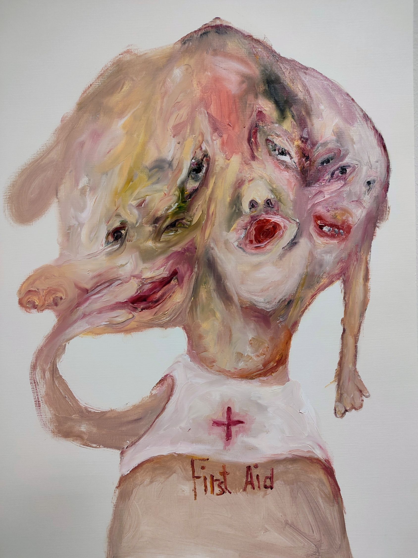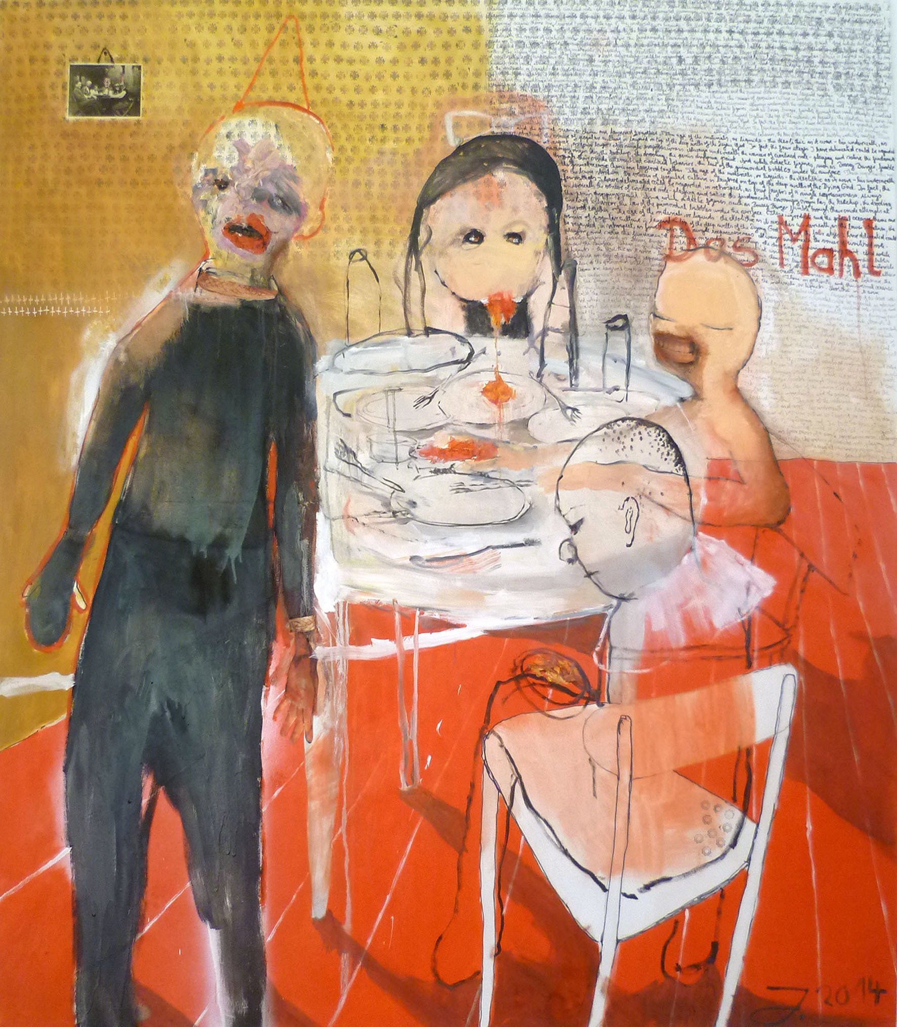 I´m inspired by the following artists. Francis Bacon, Paul Mc Carthy, Georg Grosz, Cindy Sherman but I`m not very ambitious in art history, so I often work very free without having some imaginations from other artists in my mind. I think that is the reason of the independence of my paintings. In my education, during my studies I learned a lot about Georg Grosz. I try to make satire paintings for the present time, we live in today.