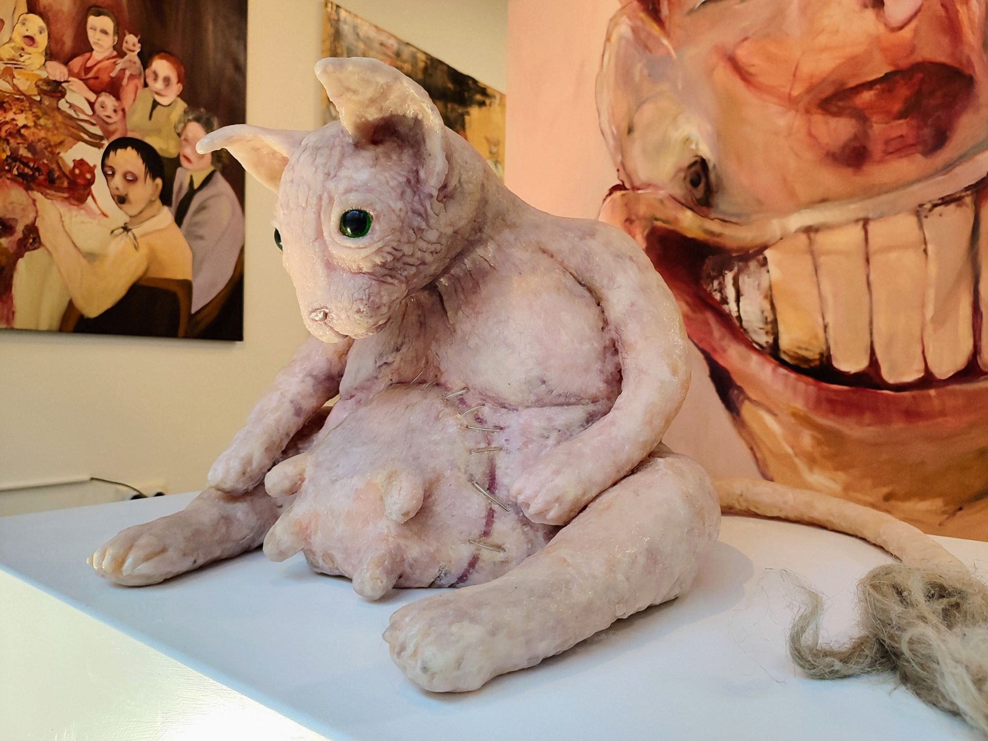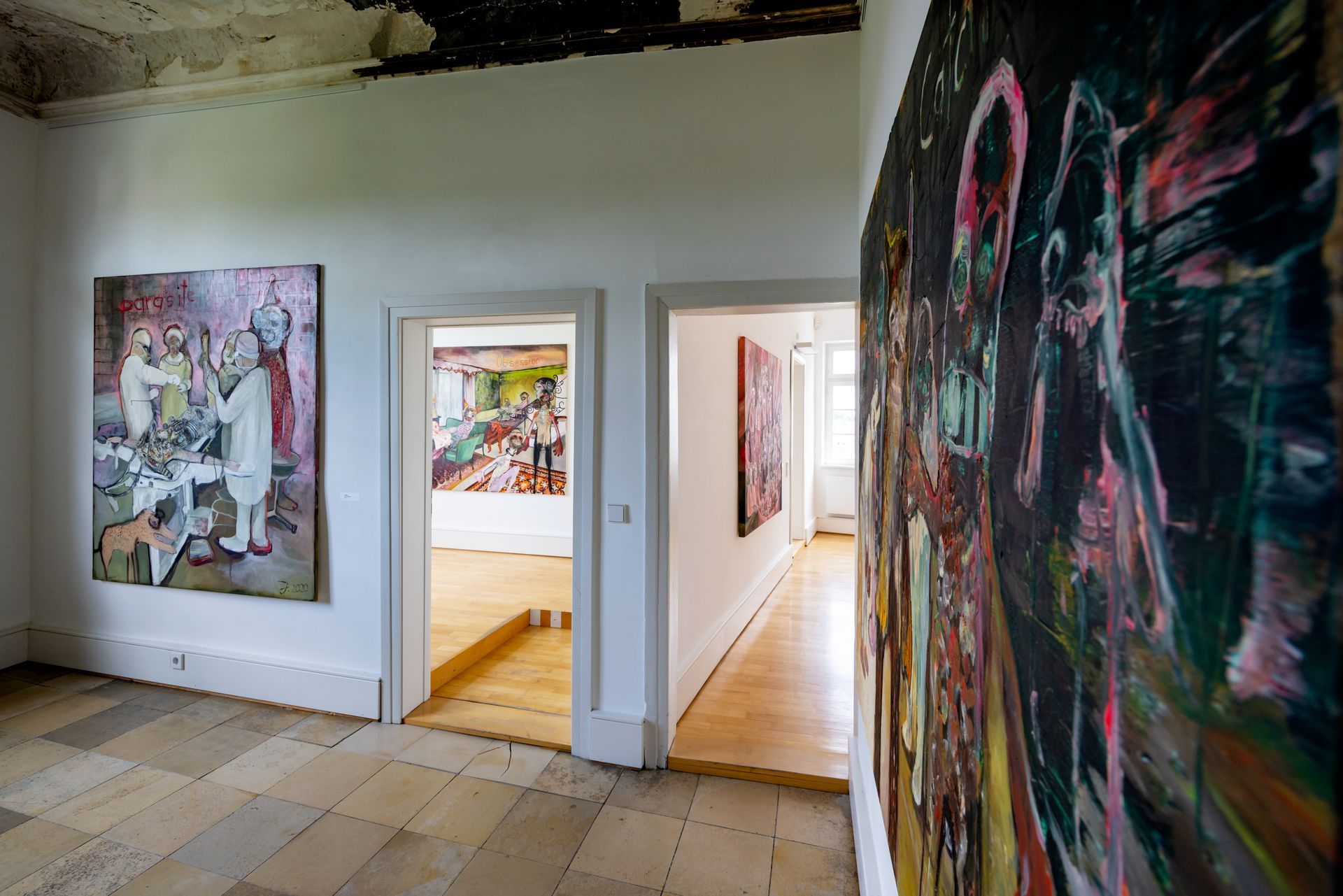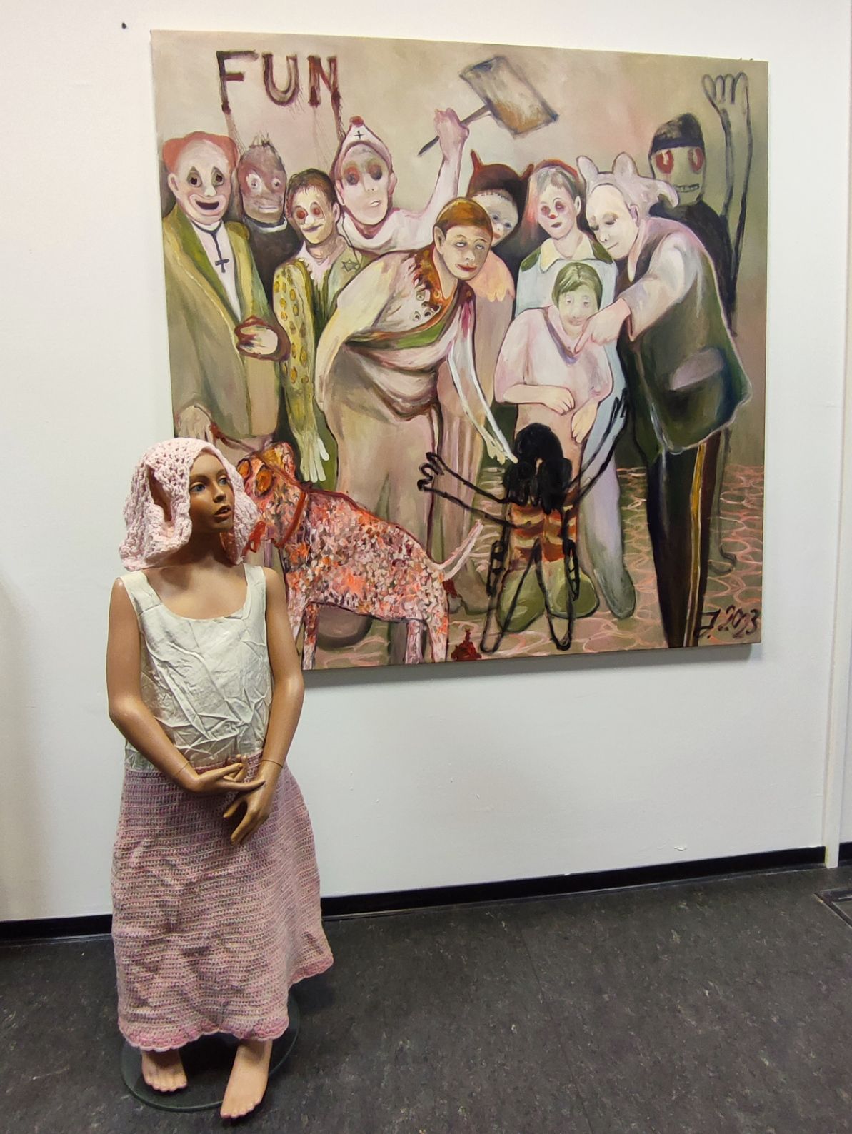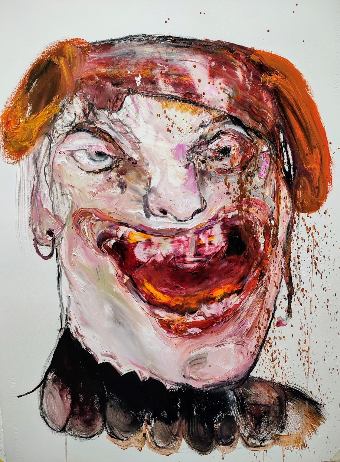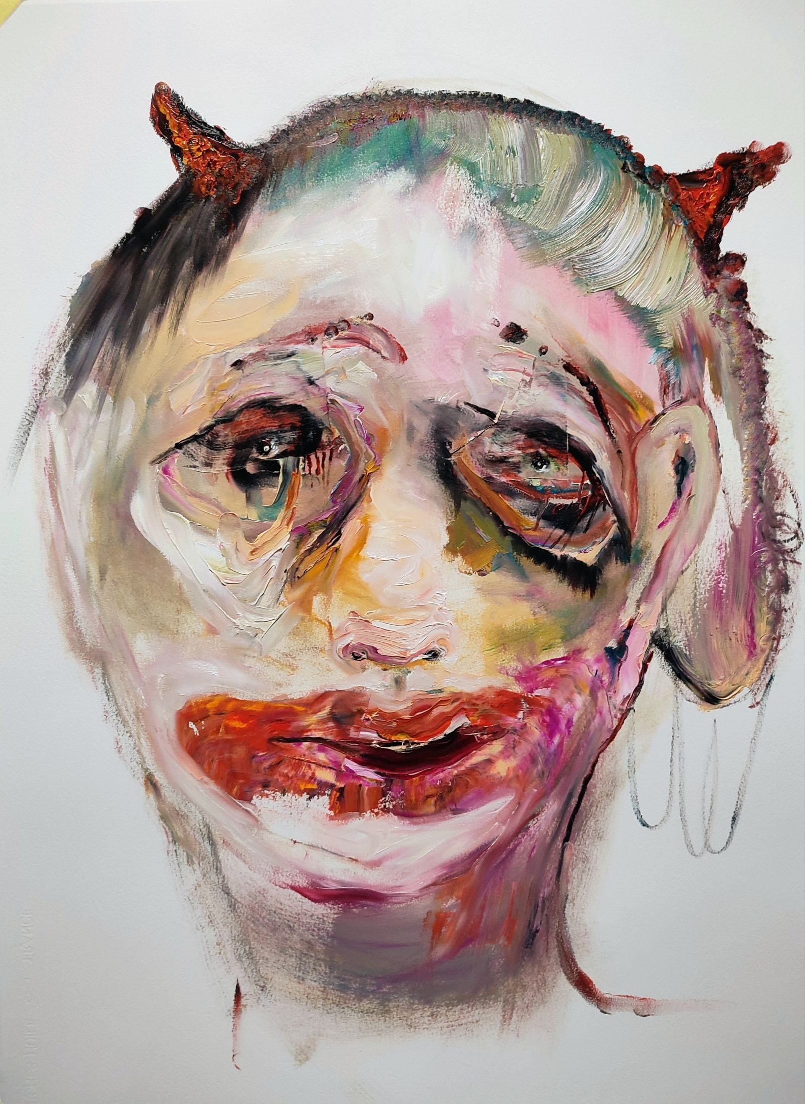 I´m inspired by the following artists. Francis Bacon, Paul Mc Carthy, Georg Grosz, Cindy Sherman but I`m not very ambitious in art history, so I often work very free without having some imaginations from other artists in my mind. I think that is the reason of the independence of my paintings. In my education, during my studies I learned a lot about Georg Grosz. I try to make satire paintings for the present time, we live in today.
