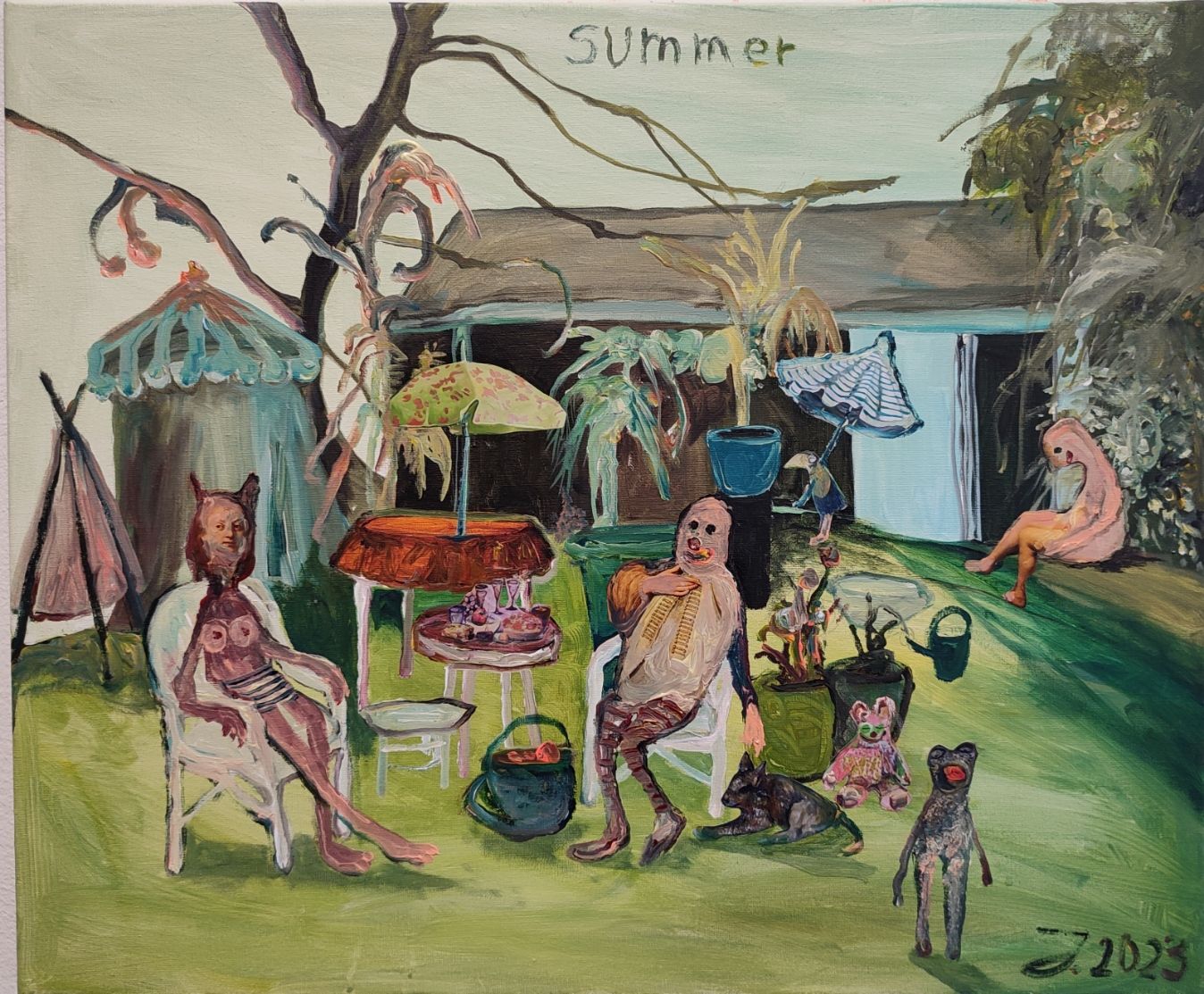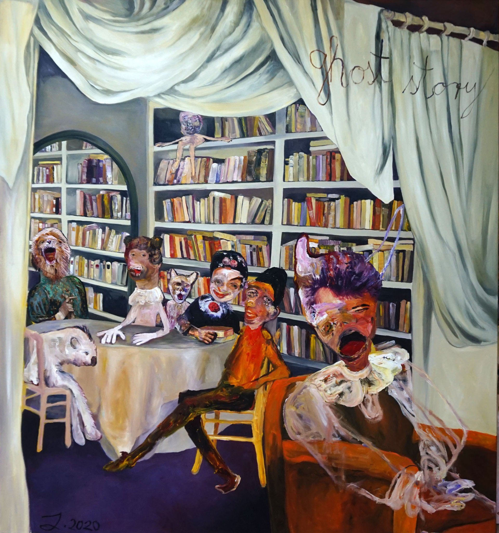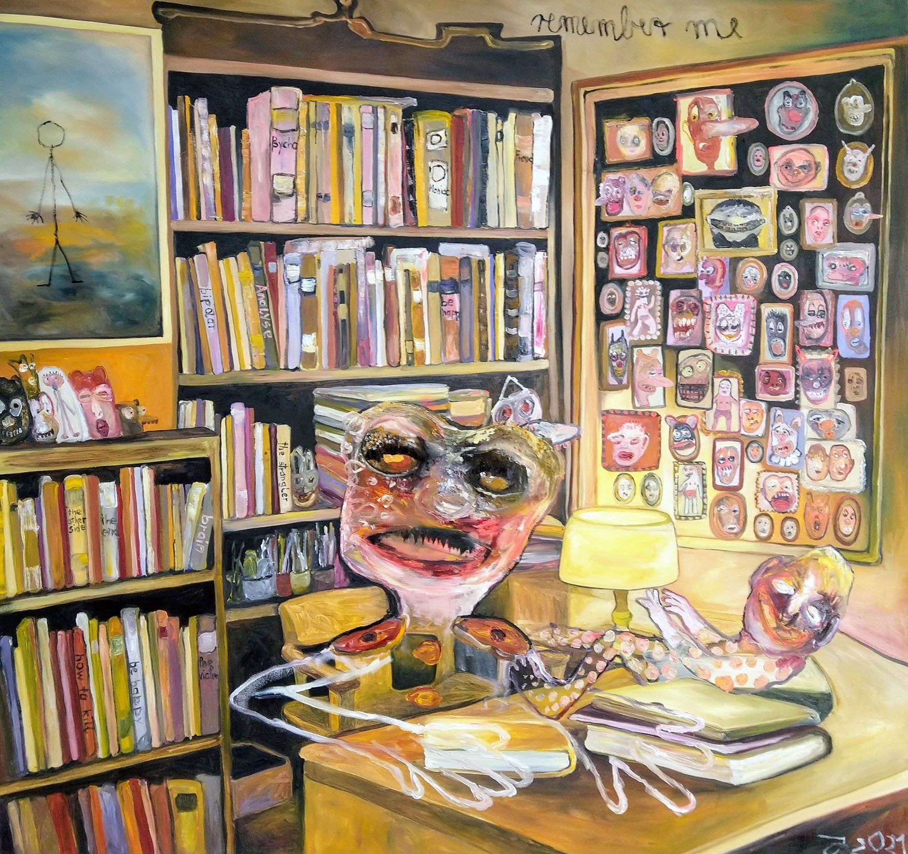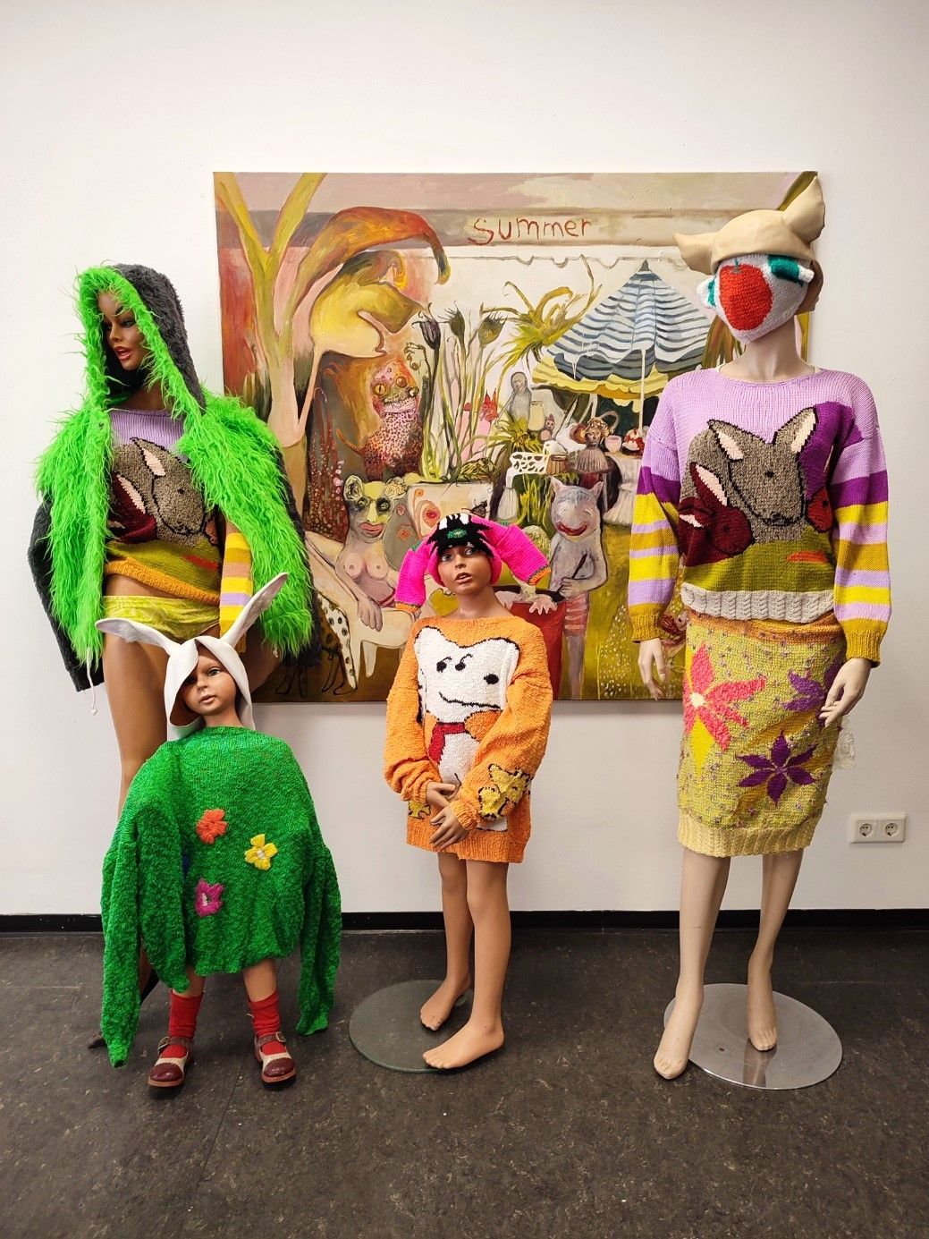 My works are very close to filmstills, like modern theater and when I`m painting I slip into a role to imagine and create the strange creatures I paint in my work.