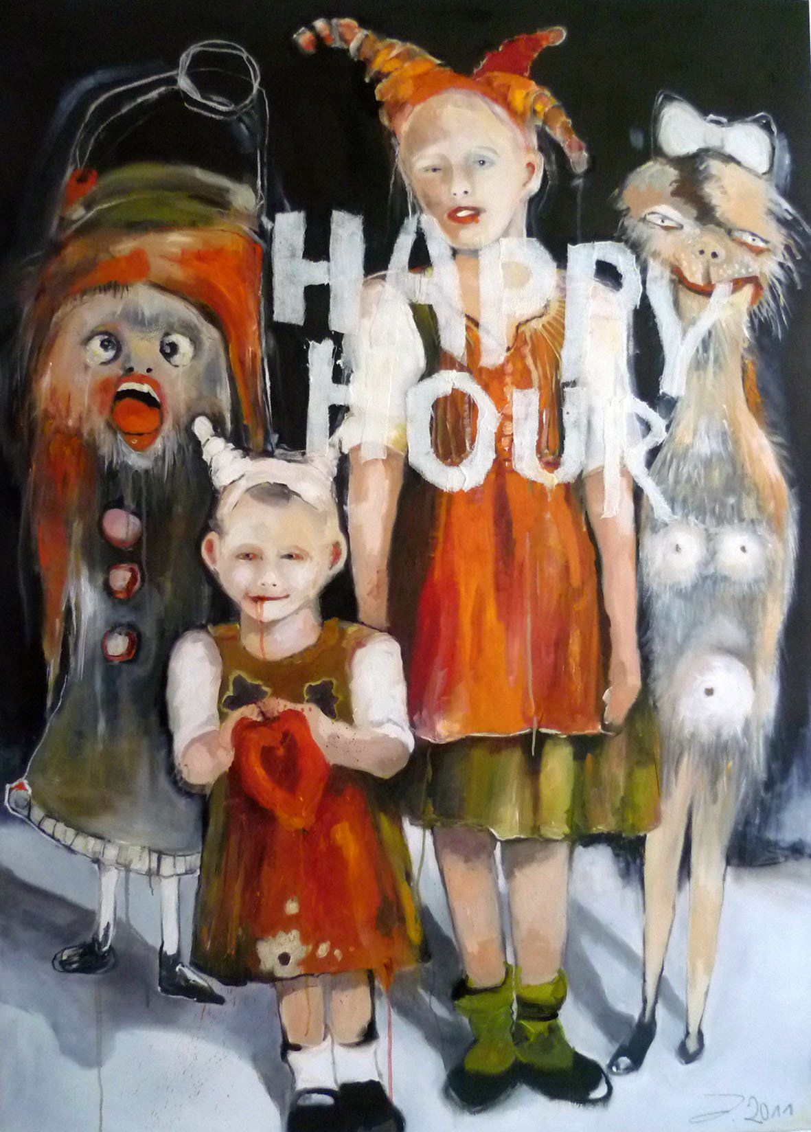 Born in Mainz in 1971 and raised in a small village surrounded by forests, pets, and rural stillness, Hundertmark`s formative years imbued her with a sensitivity to the natural world that subtly permeates her work. Animals, both real and symbolic, frequently appear in her paintings-not as passive subjects but as reflections of human folly and the skewed dynamics between species. Her formal training spans multiple disciplines: painting at the Academy of Fine Arts in Nürnberg, stage performance at a theatre school, and ceramic design. Hundertmark`s art brims with commentary on human behavior, particularly how the relentless pursuit of status, beauty, and wealth can lead to absurdity and alienation.