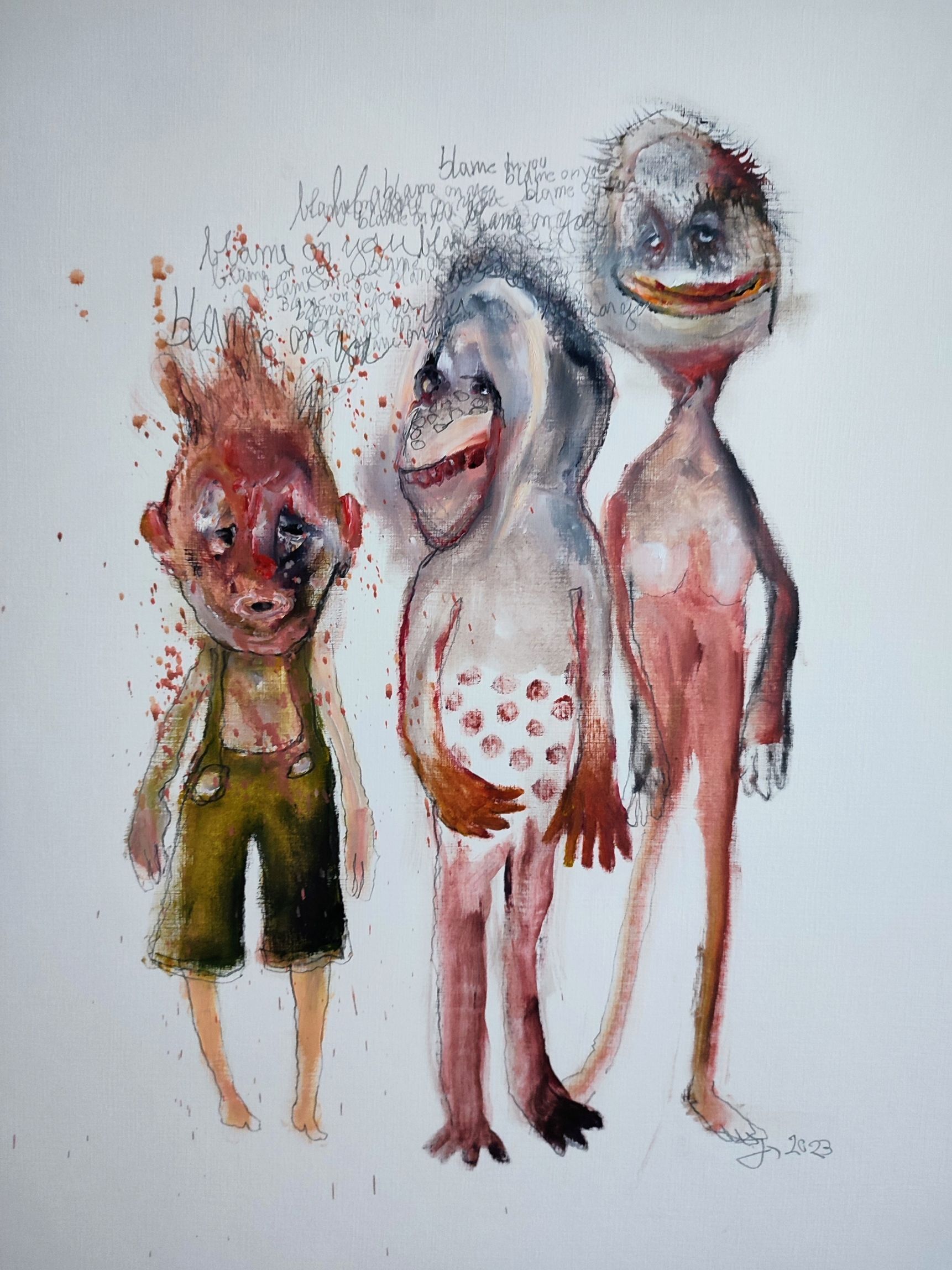 In a world that increasingly filters discomfort through polished surfaces and curated illusions, Juliane Hundertmark brings a raw, unfiltered perspective through her singular blend of visual storytelling. Based in Berlin since 2005, the German painter has forged a reputation for her eccentrically layered work, where grotesque humor and social critique coexist in unsetting harmony. Her practice straddles the line between comic absurdity and tragic reflection, exposing the paradoxes that shape modern existence. Hundertmark doesn`t shy away from confronting societal trauma, instead painting through it, often with a theatrical, burlesque twist that draws the viewer into her sardonic yet deeply human observations.