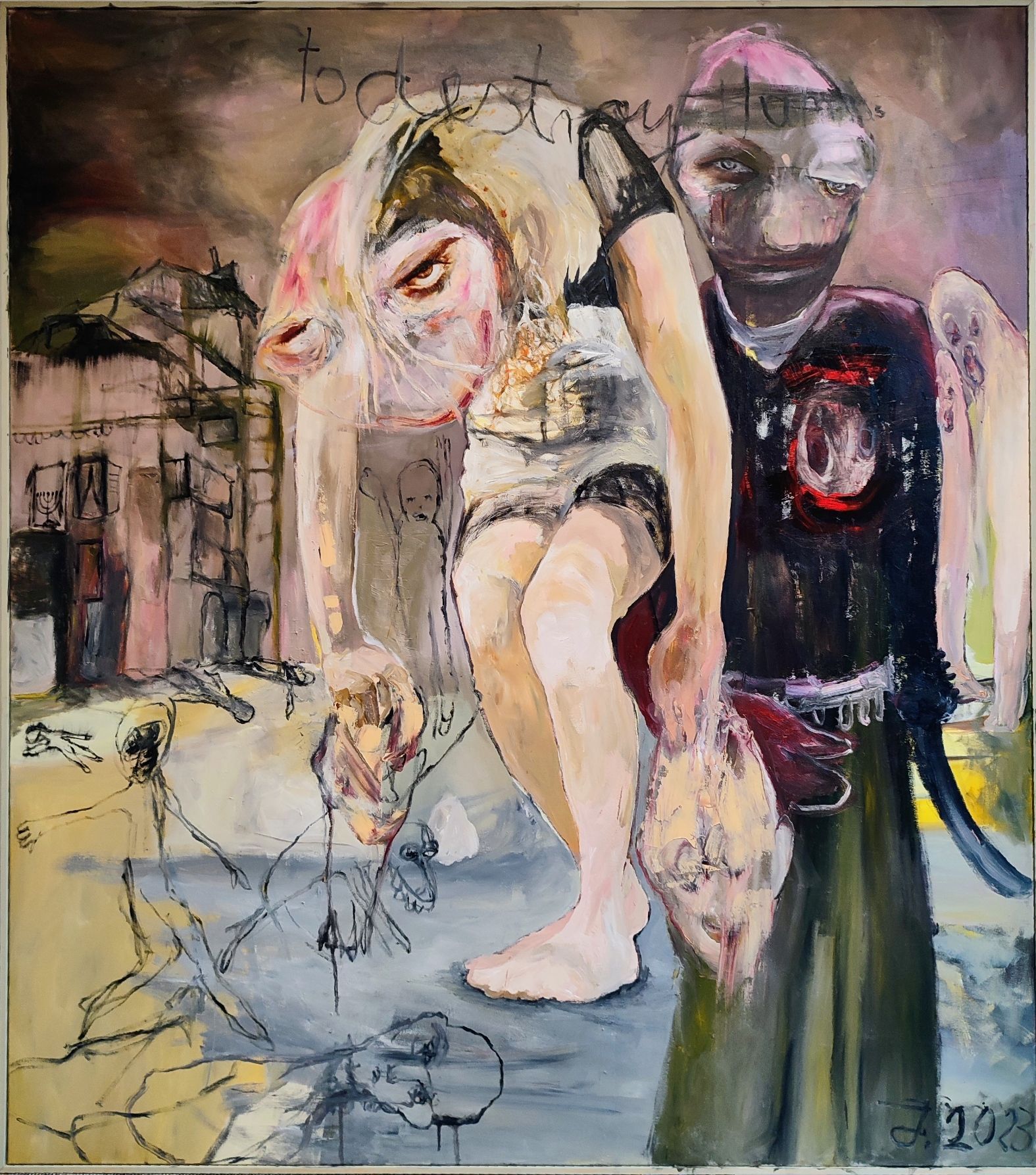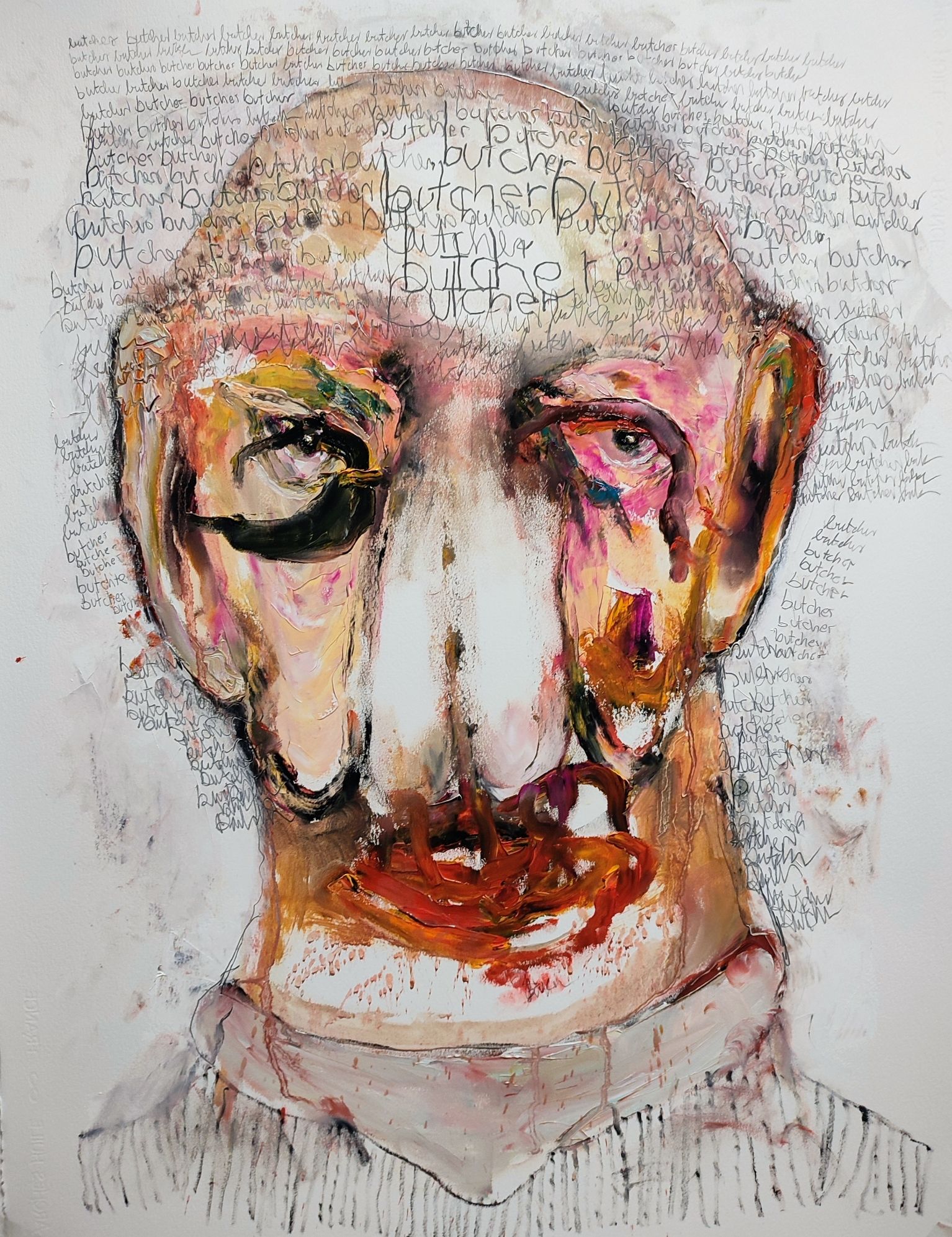 The titles of my pictures are elements of the painting, the words function as a visual element, not as a caption. Sometimes my works are zoomed on destructive art, where creating and destroying coincide.